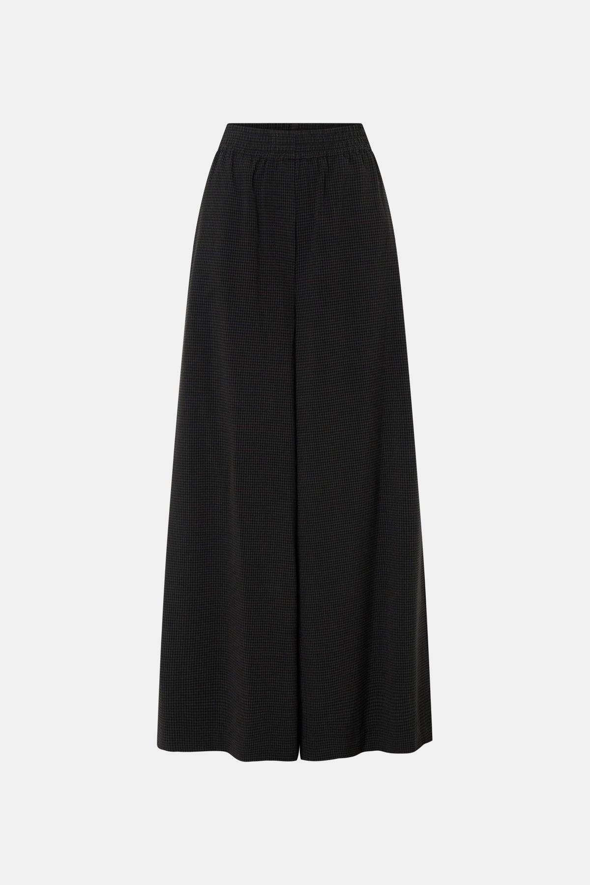 CAMILLA AND MARC Genre gingham soft suiting pant in grey. Elasticated waistband with faux fly. Dropped crotch, inseam pockets, blind hem.