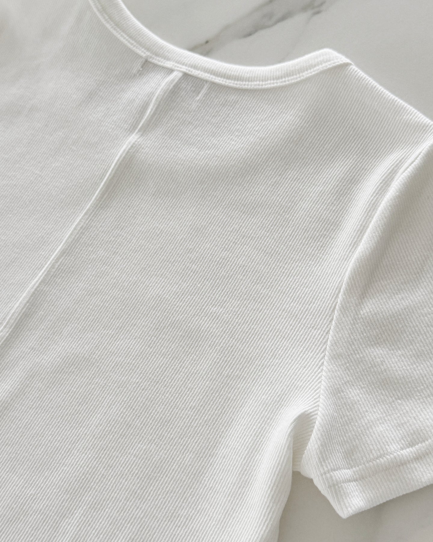 The Baby Tee is a wardrobe staple, thoughtfully crafted from premium cotton rib for a soft yet structured feel. Designed with a classic round neckline, short sleeves, and a flattering slim fit, this versatile style is a must have, the perfect everyday basic.Â