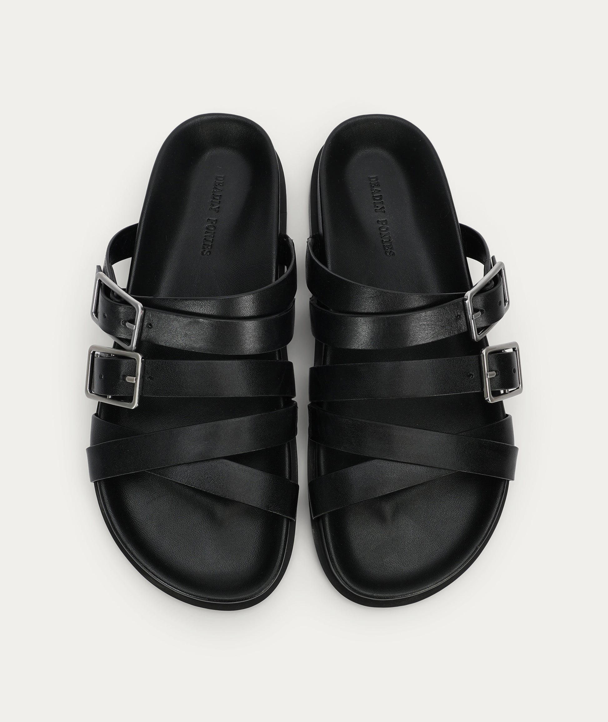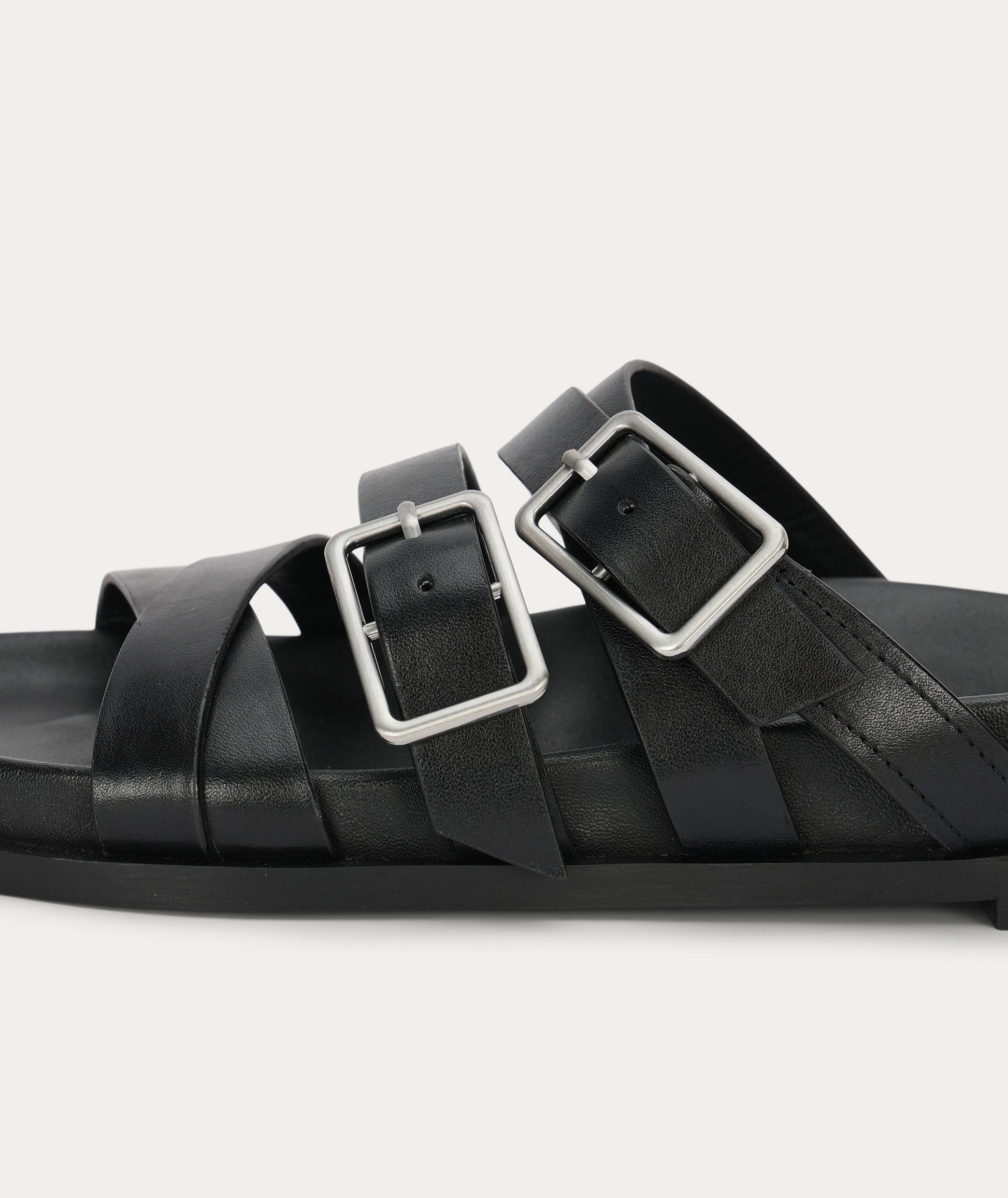 Gemini Slide pairs a buckle-strap upper with a moulded footbed wrapped in soft Lamb Nappa for lasting comfort. Crafted from supple Calf Nappa and set on a durable rubber sole, this slide features a subtle 5mm heel, making it an effortless everyday essential.