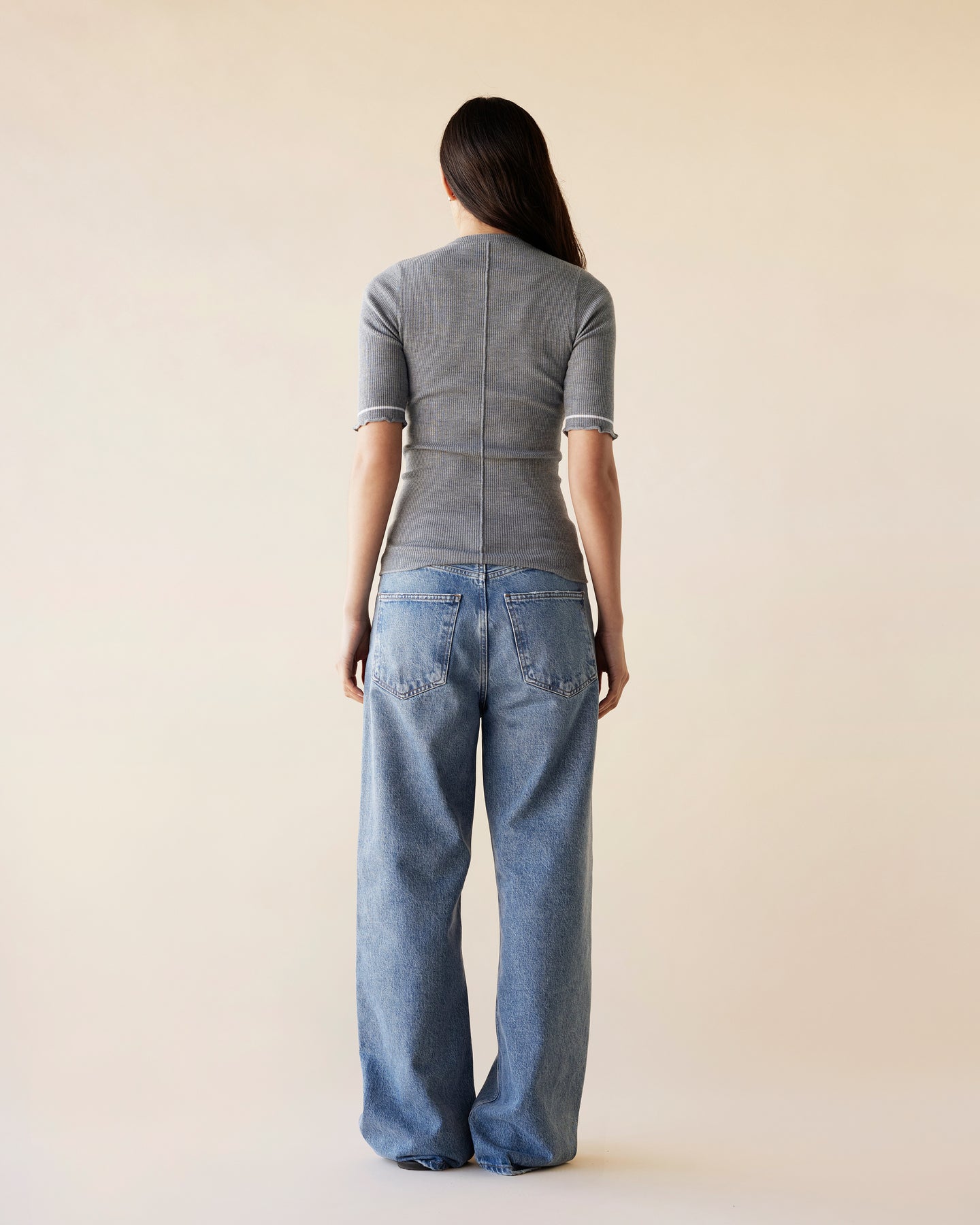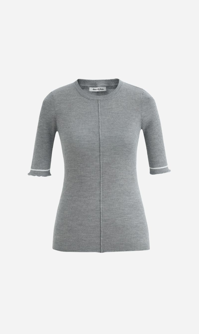 Designed to be a staple in your daily wardrobe edit, the Dear Dylan signature half sleeve merino knit is a classic design for effortless everyday wear. Versatile and understated featuring a round neckline, fitted silhouette and flattering half-sleeve, finished with contrast line detailing. The perfect multifunctional piece ideal for layering.Â