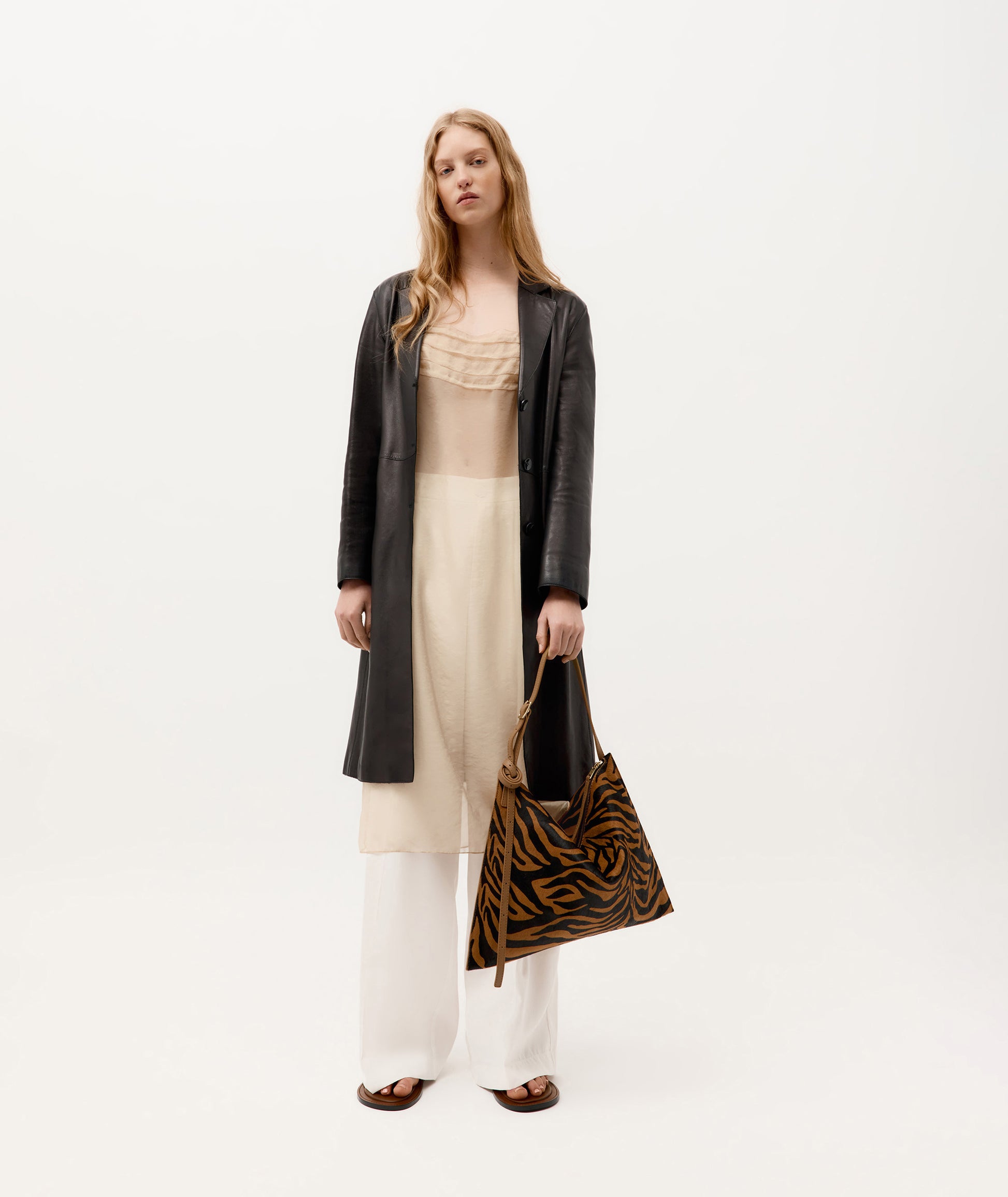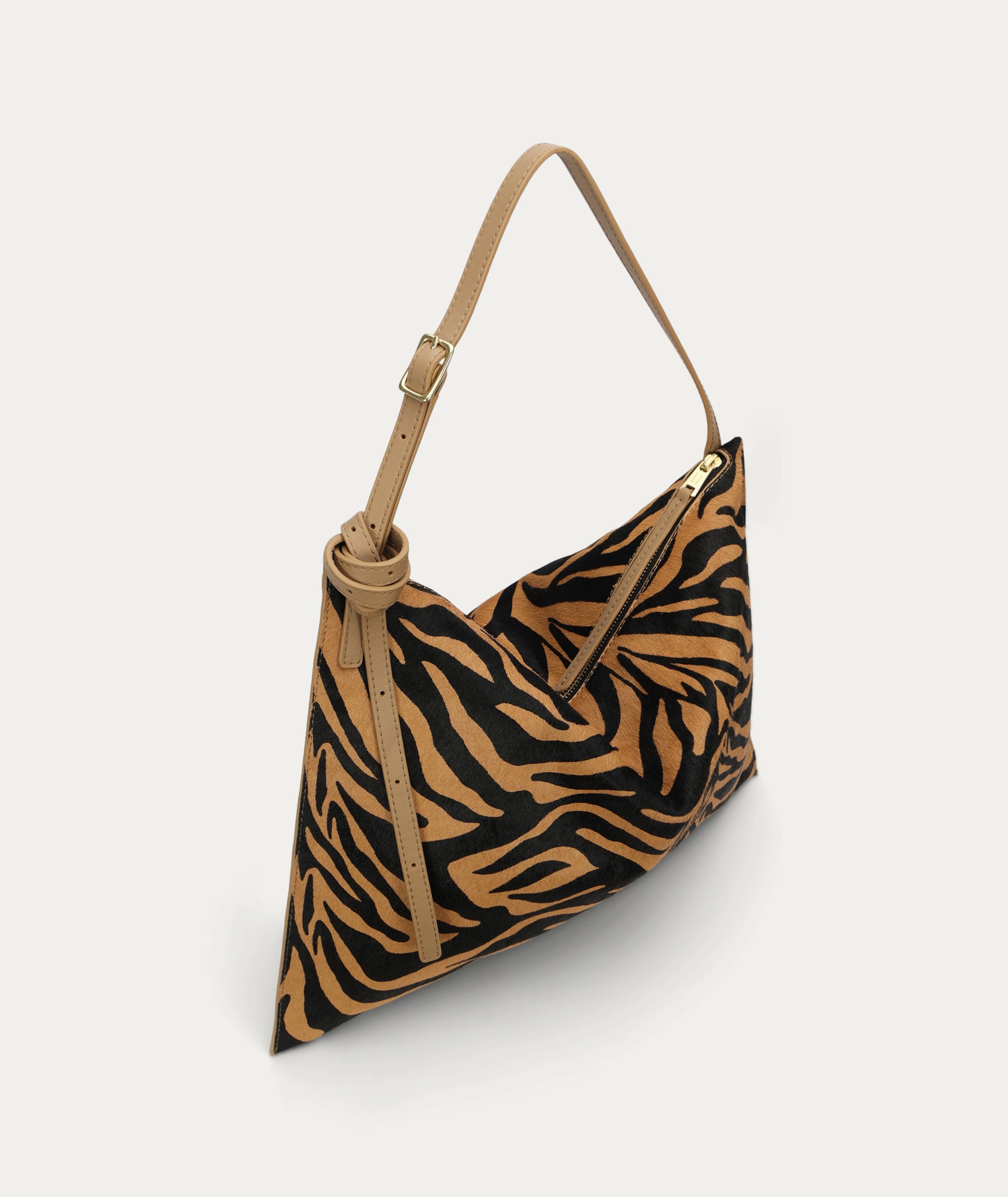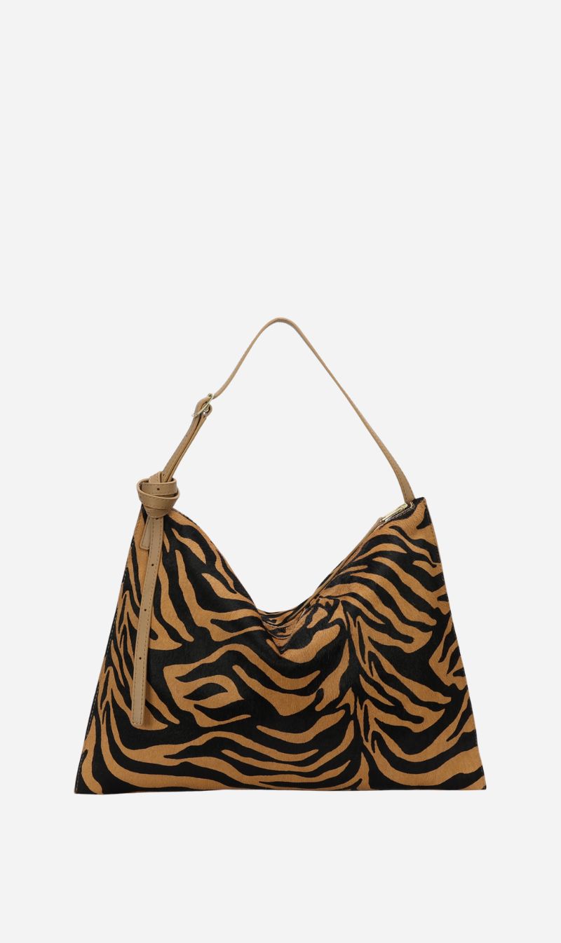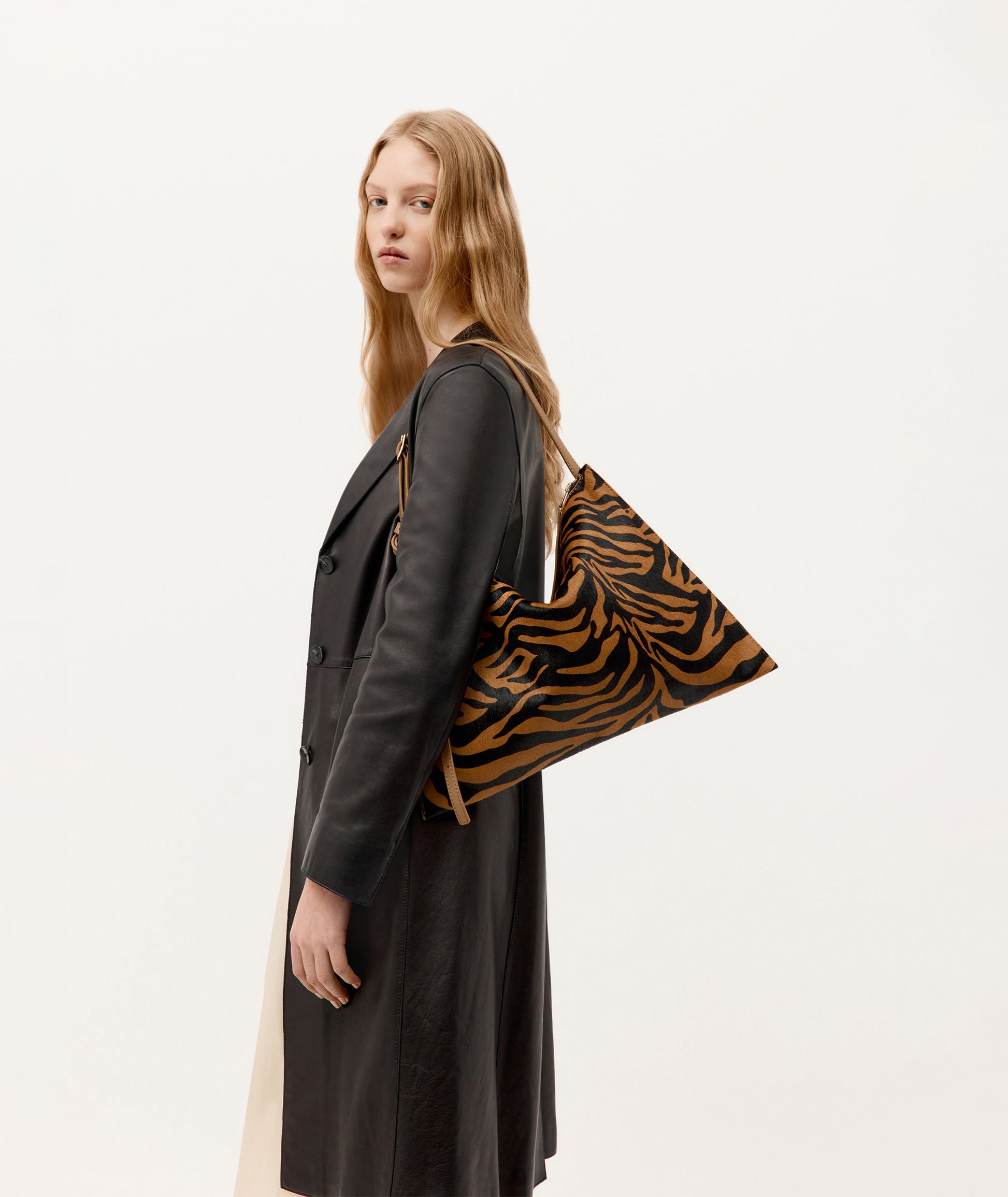Crafted in Ziger Calf Hair, Mr Chopalopagus showcases a slouchy silhouette. An adjustable strap, signature brass hardware, slip pockets, and a secure zip closure complete the design, made for shoulder or crossbody wear.