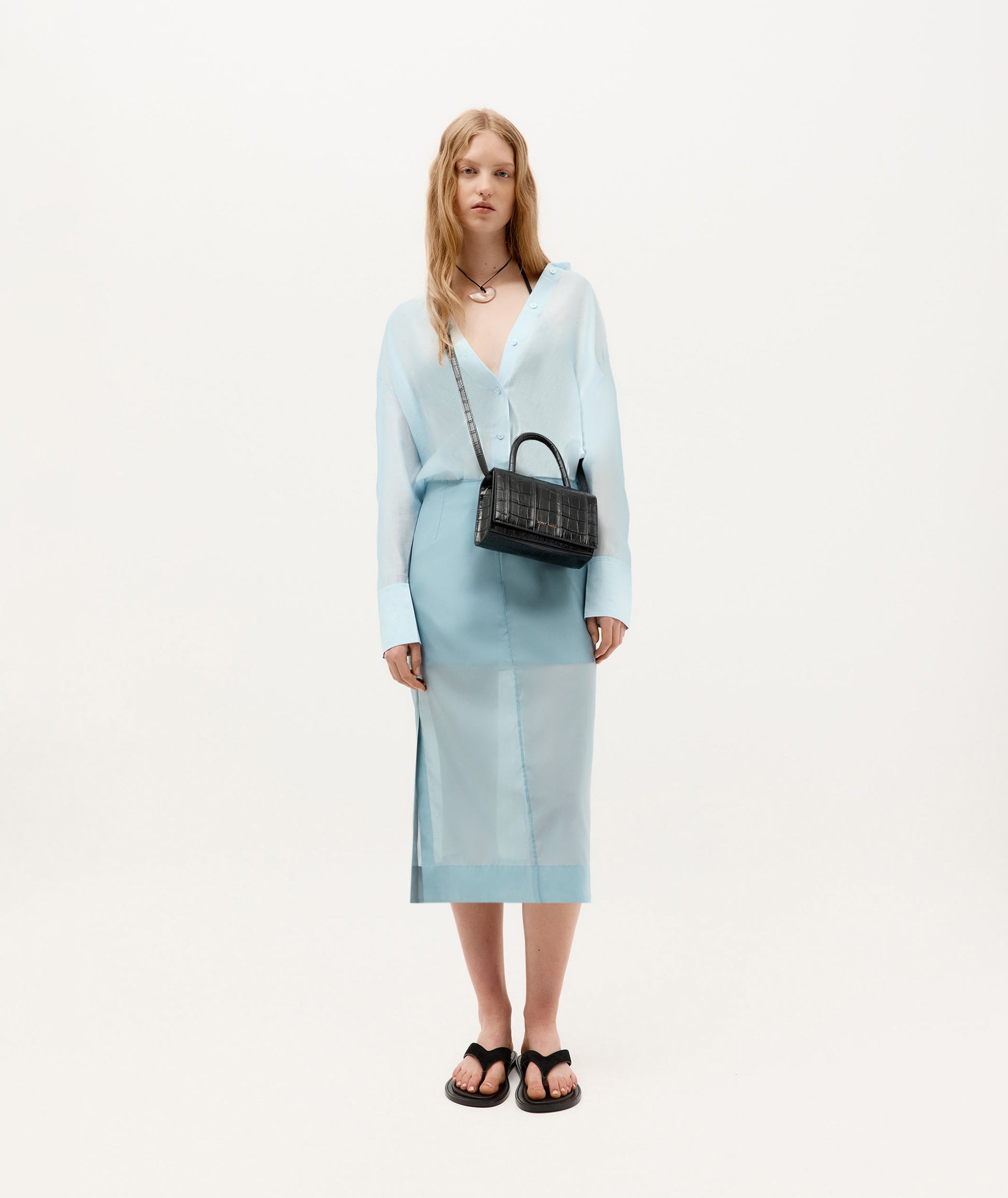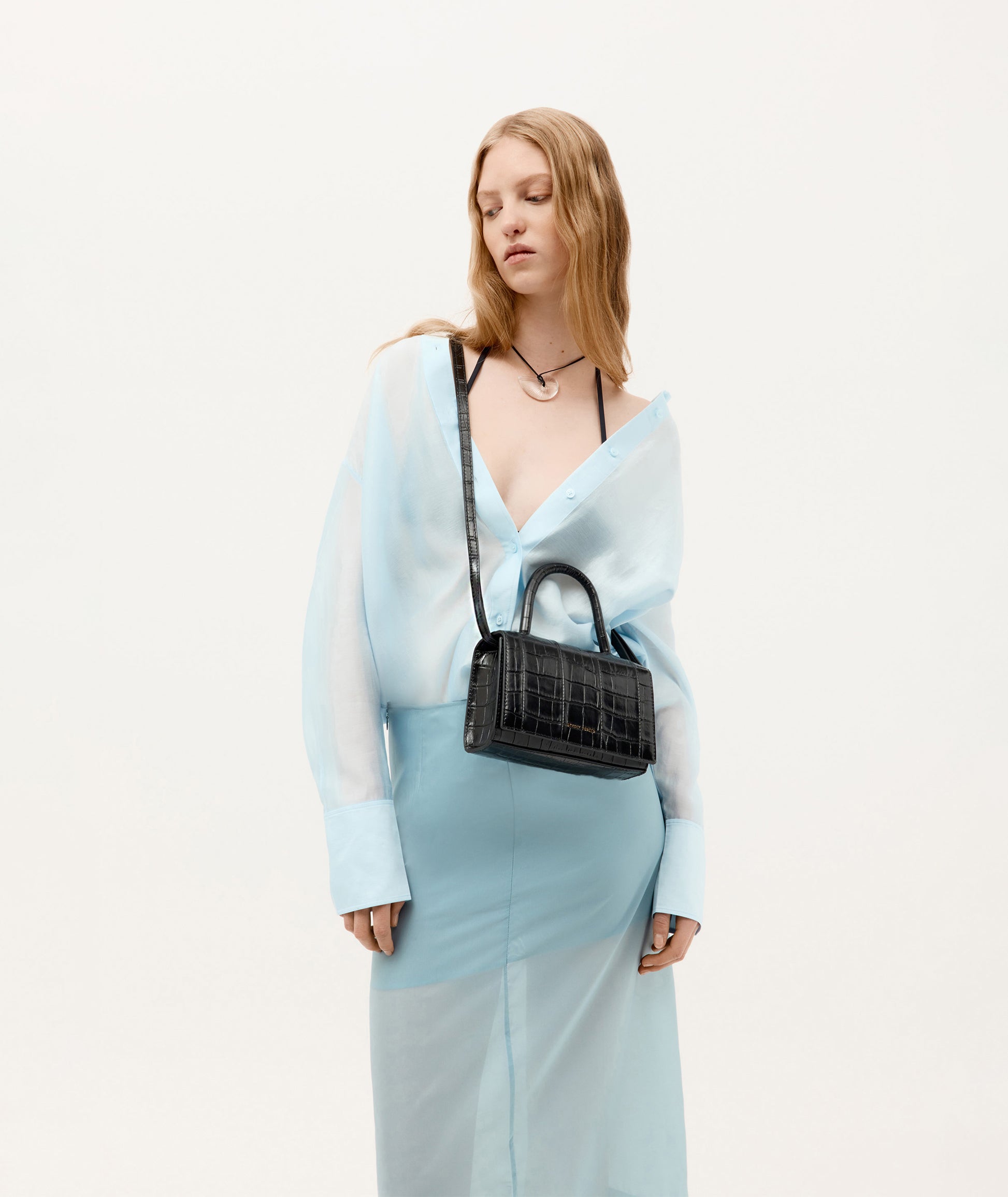 Mr Jagger is a compact mini bag, crafted from hand-painted croc-embossed Calf Leather. He features a fixed top handle and magnetic clasp closure, with a detachable, adjustable strap for versatile wear.
