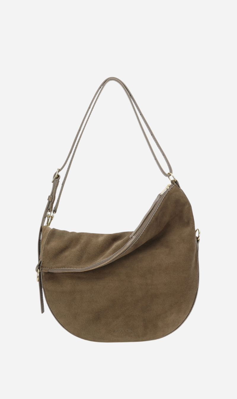 The Deadly Ponies Mr Leopard in Dune is crafted from sumptuous LWG-certified Calf Suede. This versatile silhouette can be worn folded, asymmetrically, or fully extended as a sling. He offers seamless options for crossbody or shoulder wear.