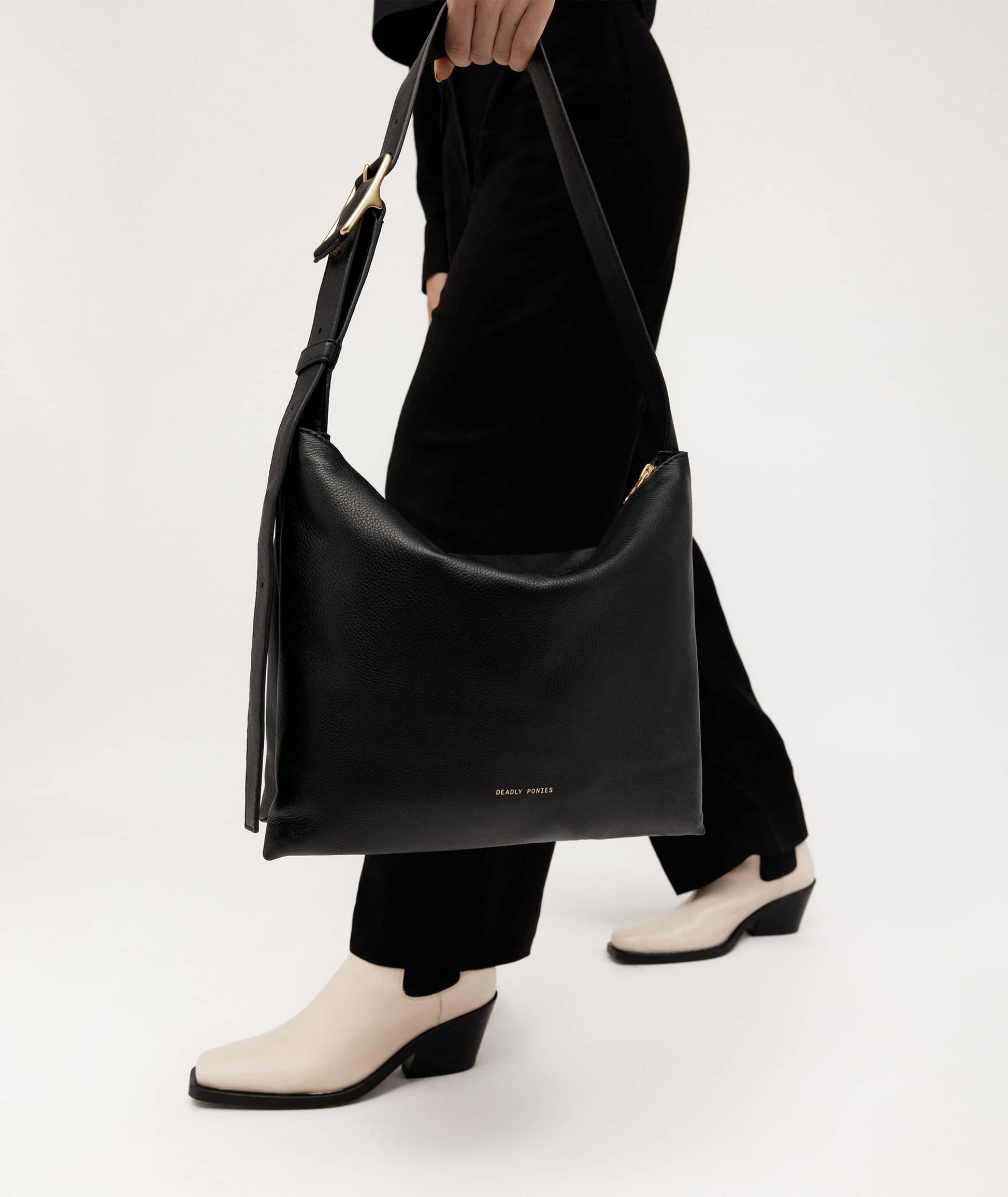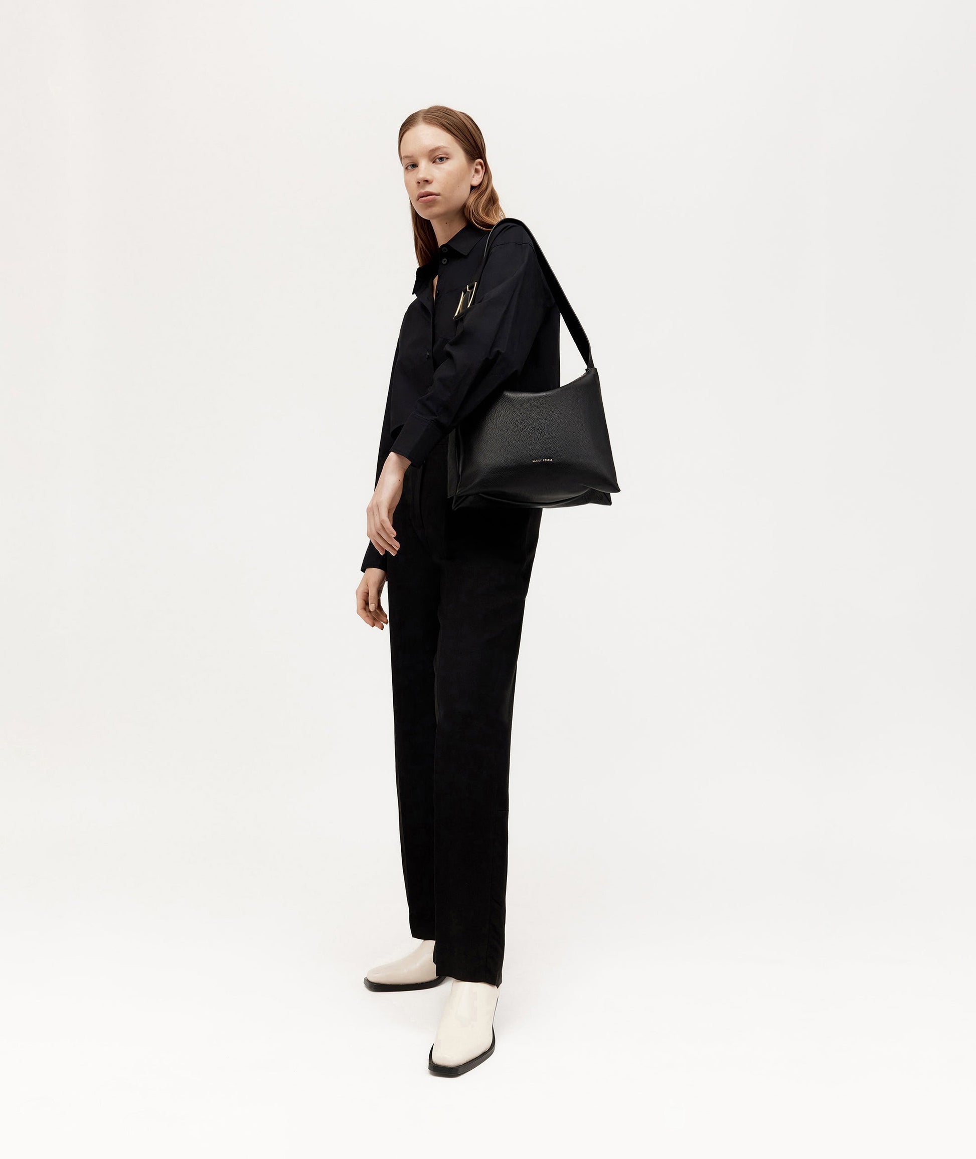 Mr Midimese, the smaller iteration of the coveted Mr Maximese. This shoulder bag features the same slouchy exterior, zip closure, adjustable strap and feature satin-finish brass buckle. Mr Midimese houses two internal slip pockets, one zip pocket, and an internal key clip.