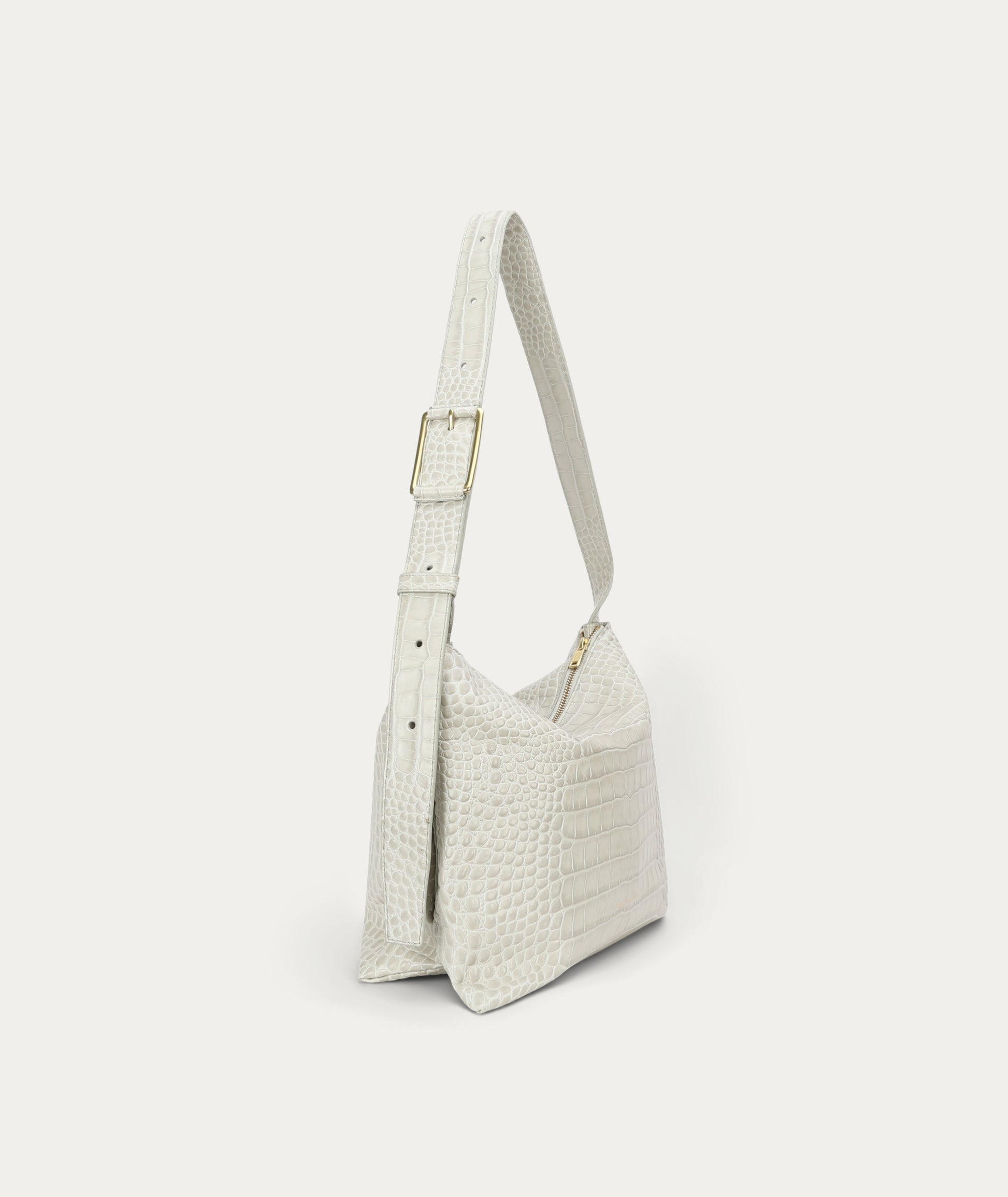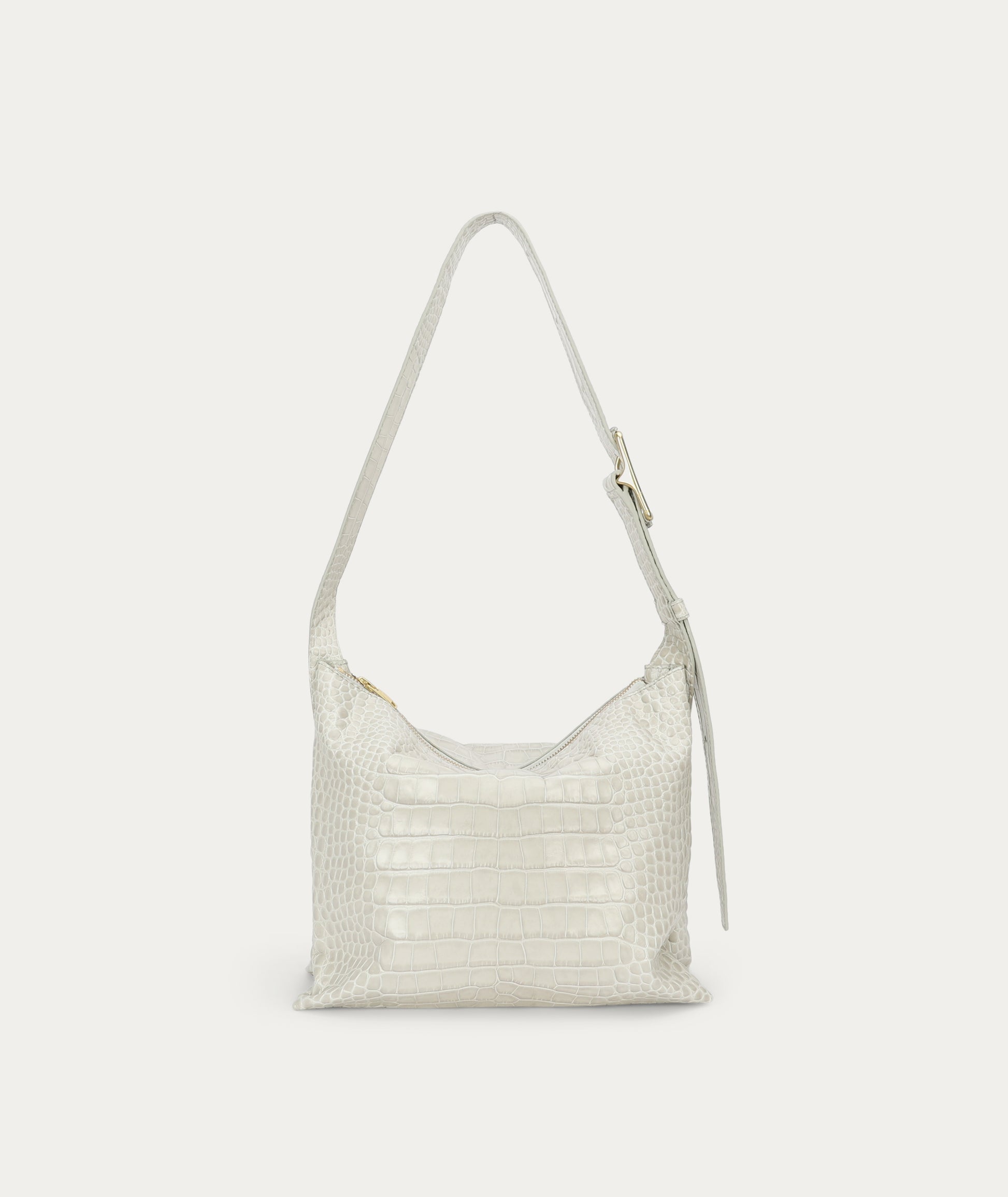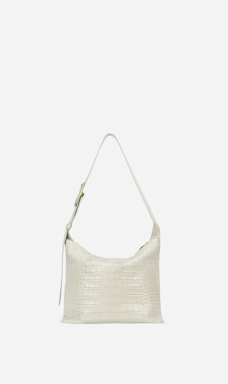 Mr Midimese in Kina is crafted from hand-painted croc-embossed Calf and features a slouched silhouette with a zip closure, adjustable strap, and brass buckle. Inside, he’s detailed with two slip pockets, a zip pocket, and an internal key clip for added functionality.