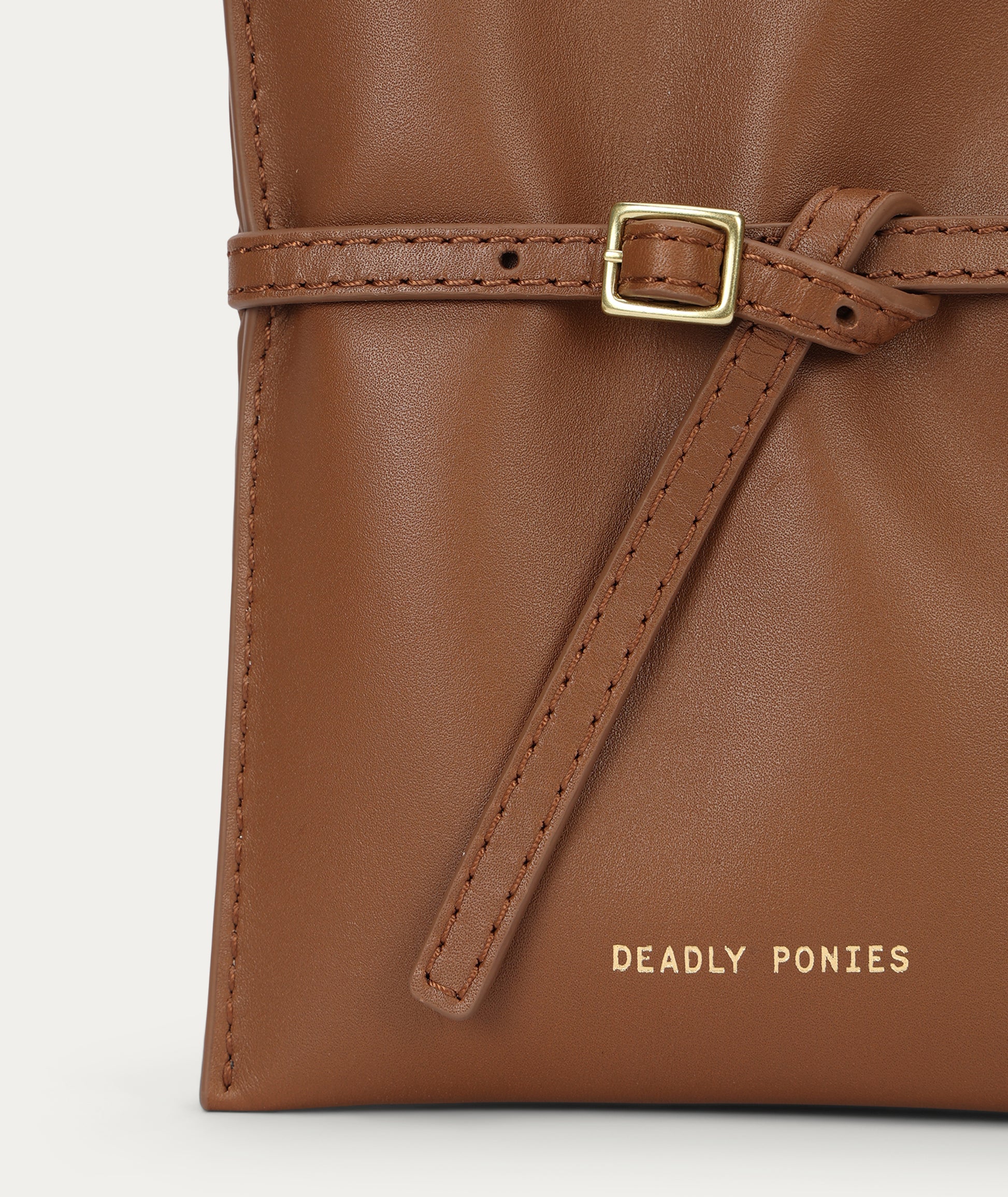 Crafted from buttery-soft Calf Nappa, Mr Penny Pouchette in Driftwood features a compact silhouette with leather strap detailing and a front buckle accent. A detachable strap offers versatile styling, while a back slip pocket keeps essentials within easy reach.