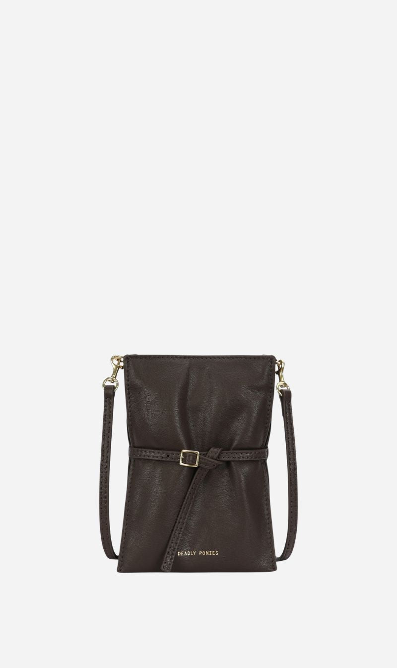 Crafted from buttery LWG-certified Calf Nappa, the Deadly Ponies Mr Penny Pouchette in Java offers a compact silhouette with leather strap detailing and a front buckle accent. A detachable strap allows for versatile wear, while a back slip pocket keeps essentials close.