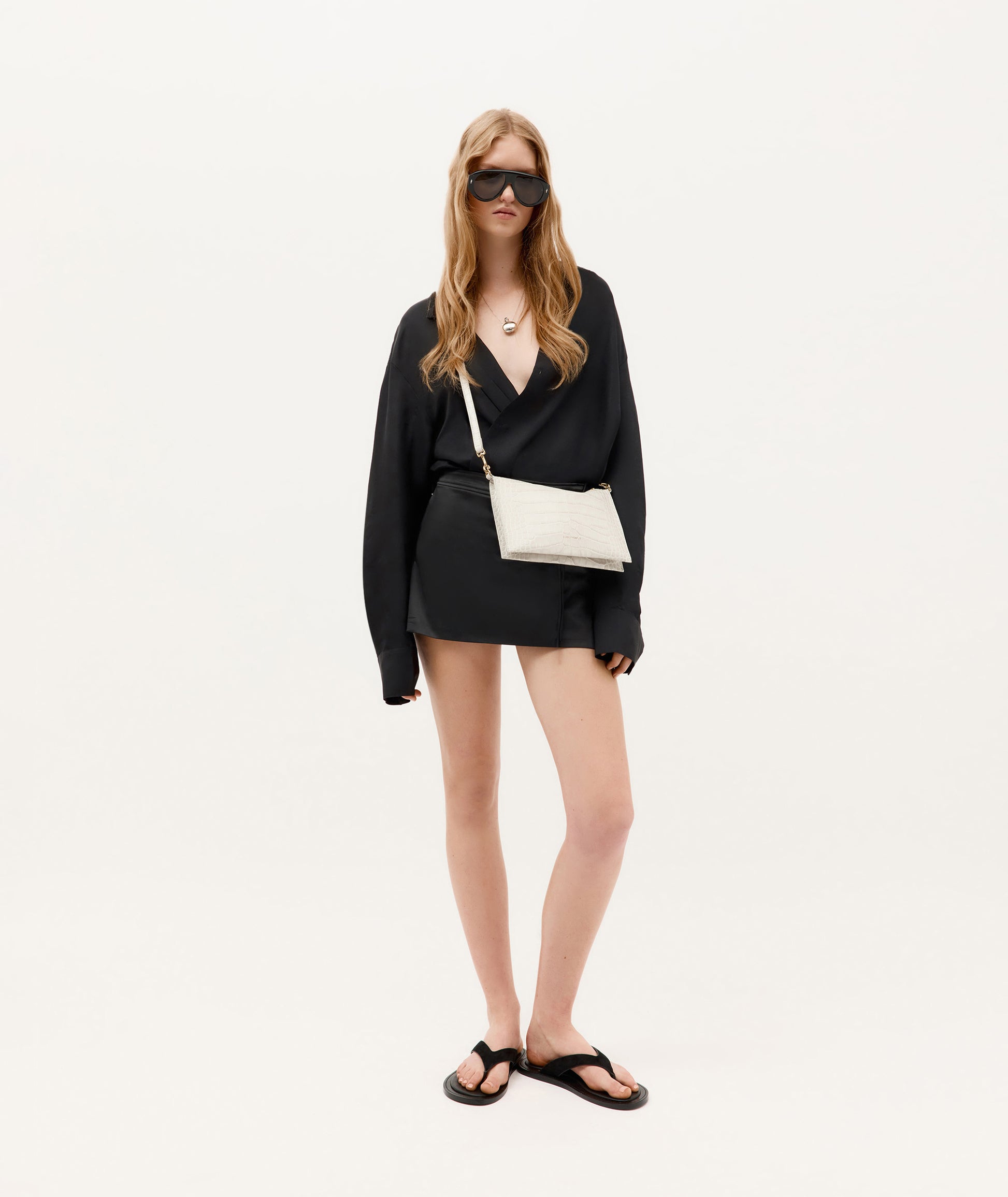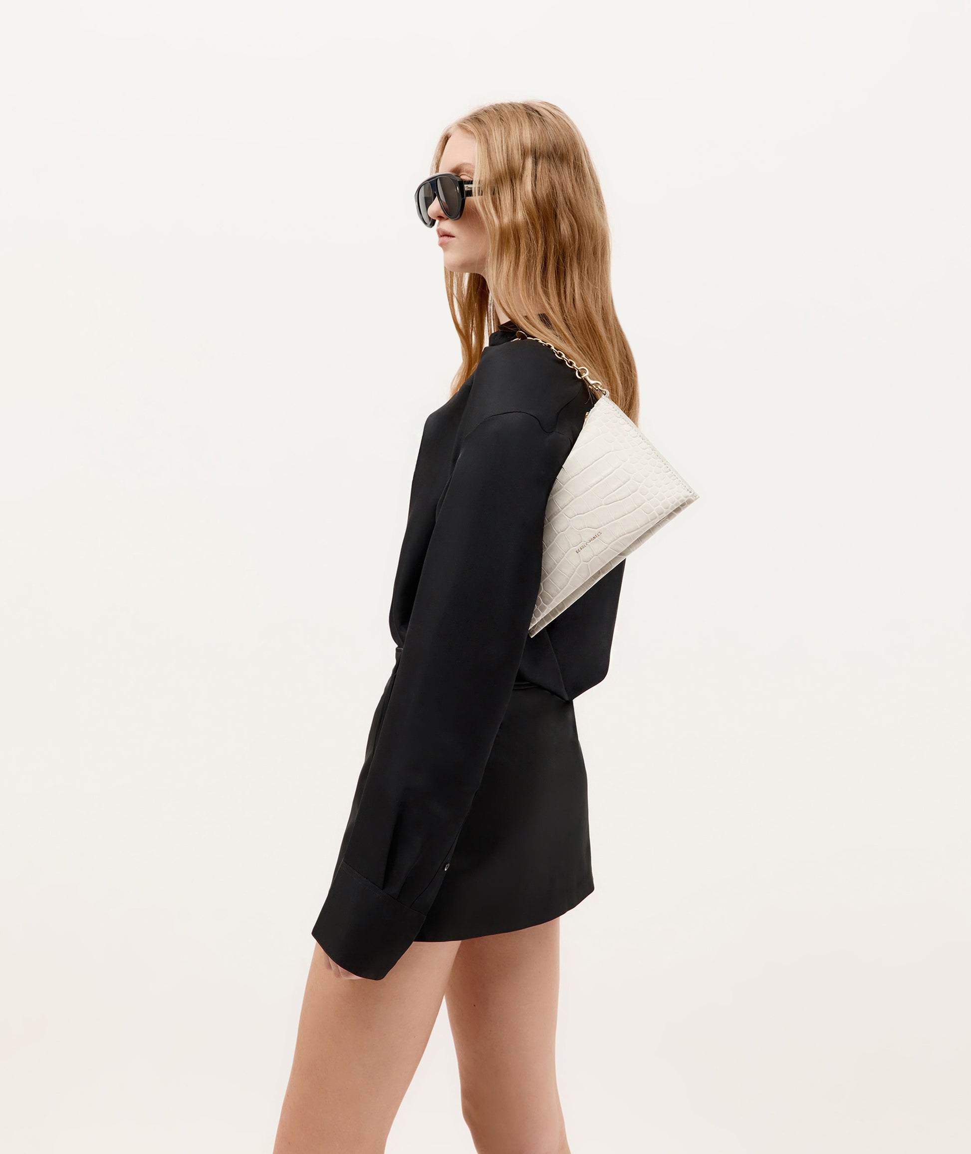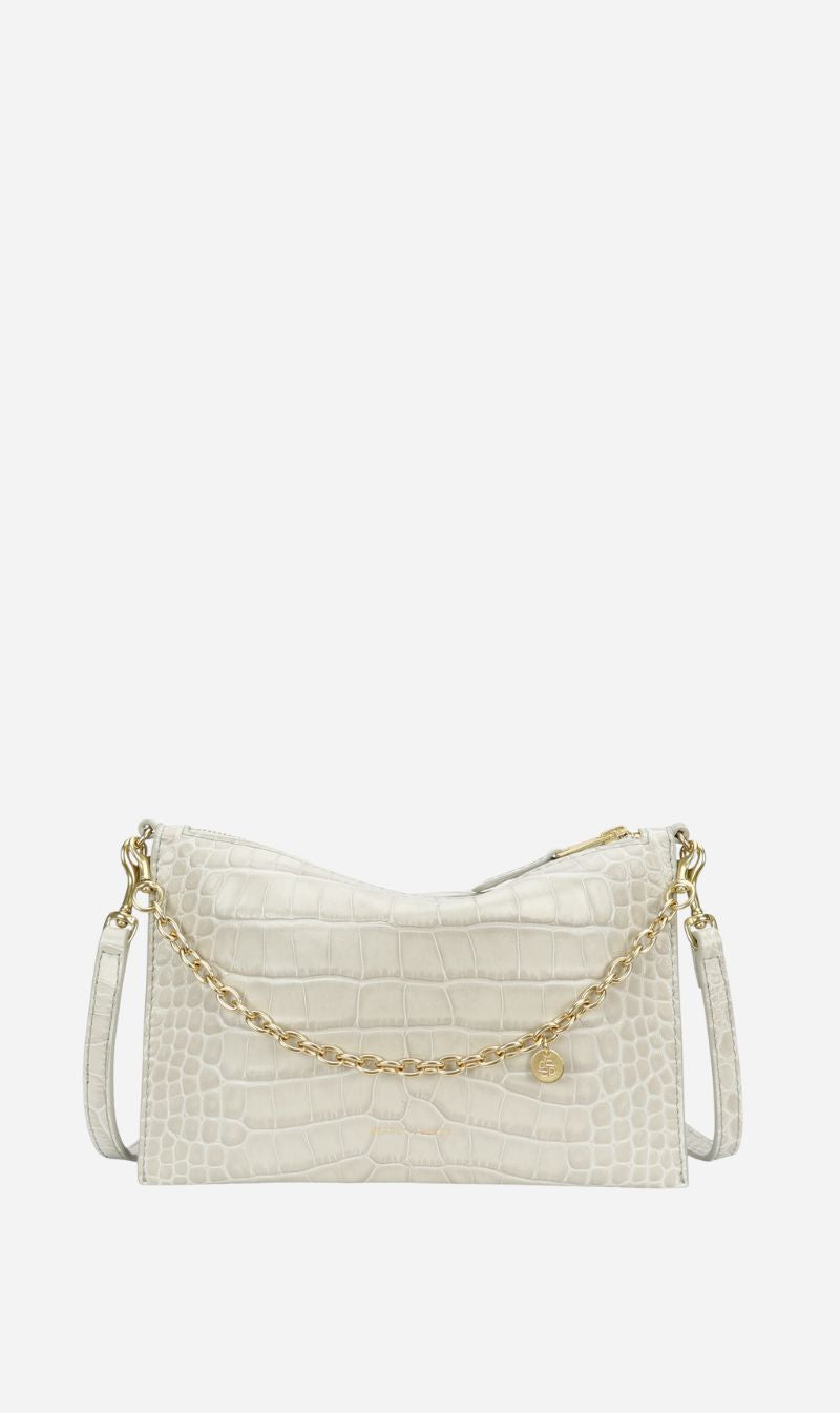 Intricately crafted from a single piece of croc-embossed Calf Leather in Kina, Mr Siamese is defined by a sleek, streamlined silhouette. With a detachable solid brass chain and adjustable strap, he transitions effortlessly from clutch to shoulder or crossbody wear.