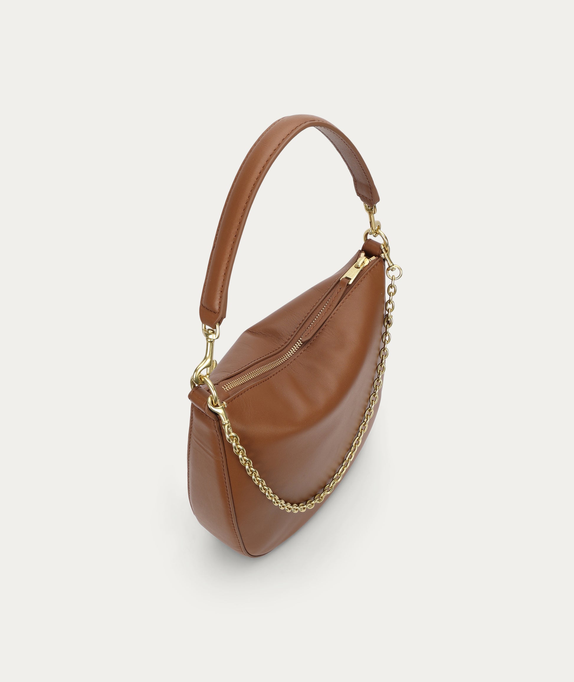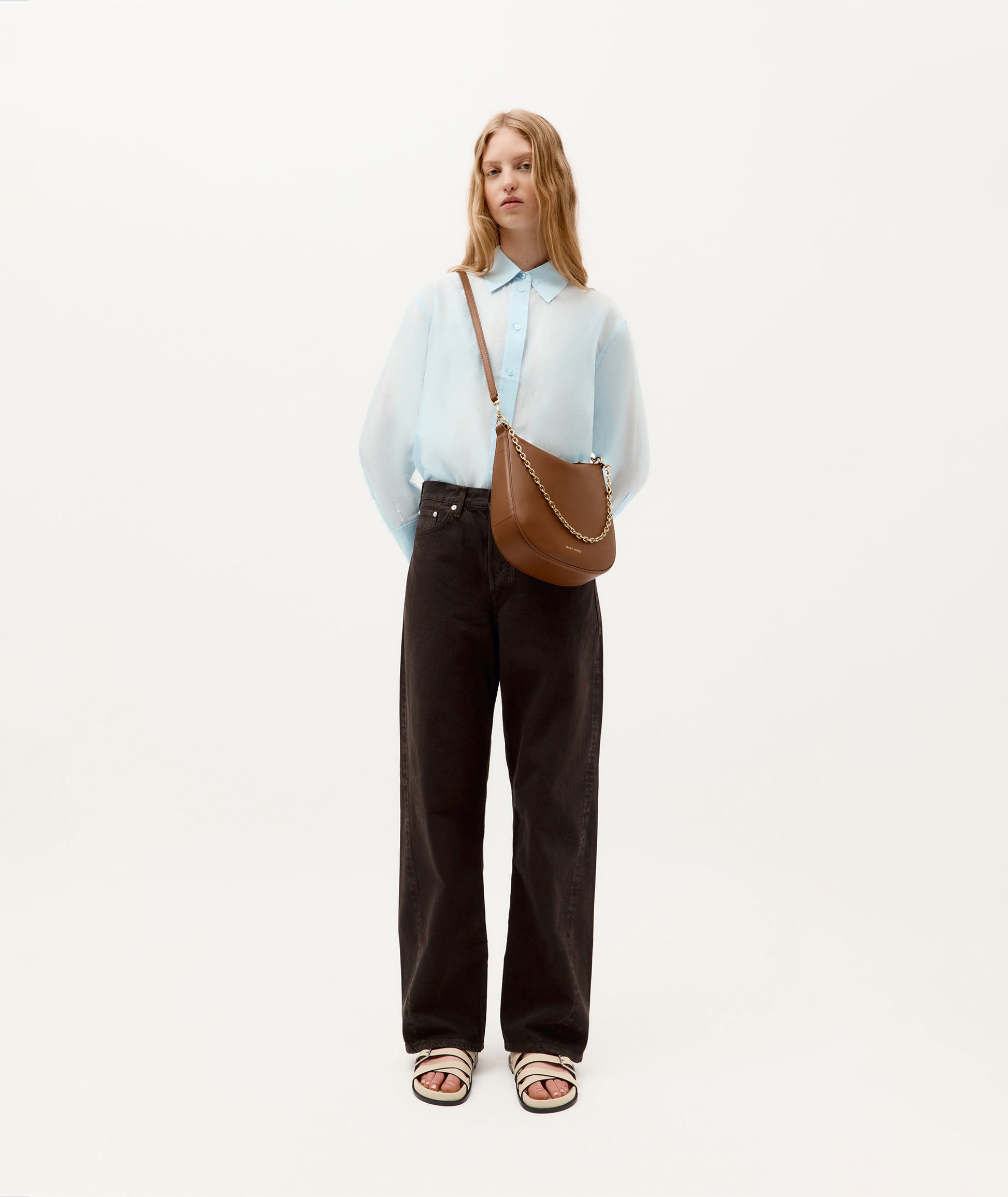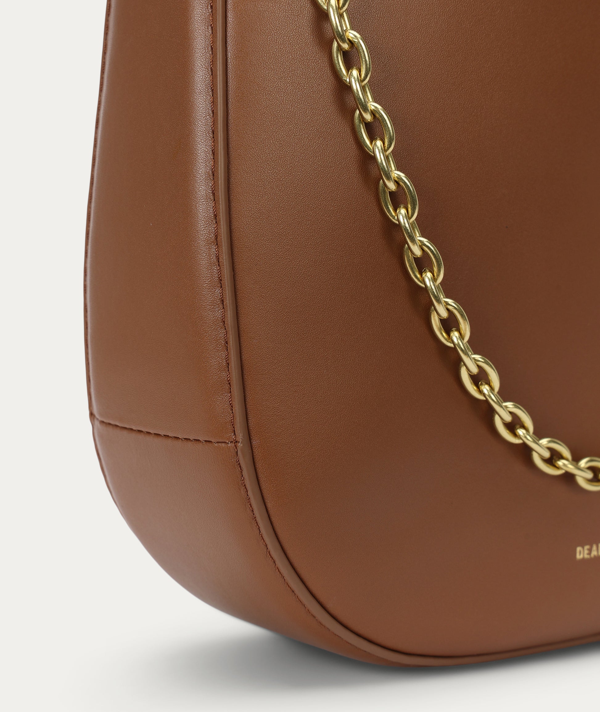 Crafted from Ironed Calf Nappa in Driftwood, Mr Sling is defined by sculptural folds and exposed seam detailing. A detachable brass chain, top handle, and an adjustable leather strap offer versatile styling.