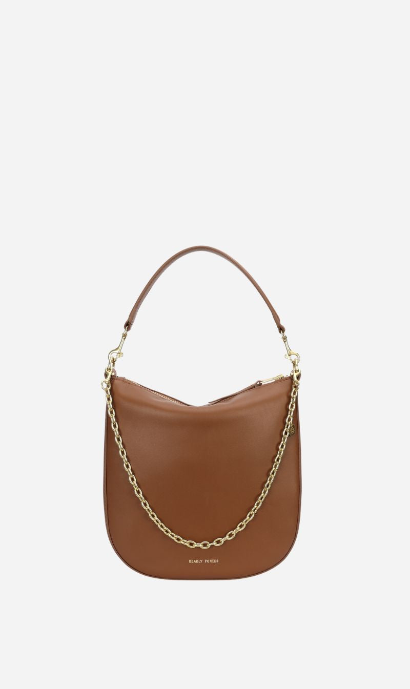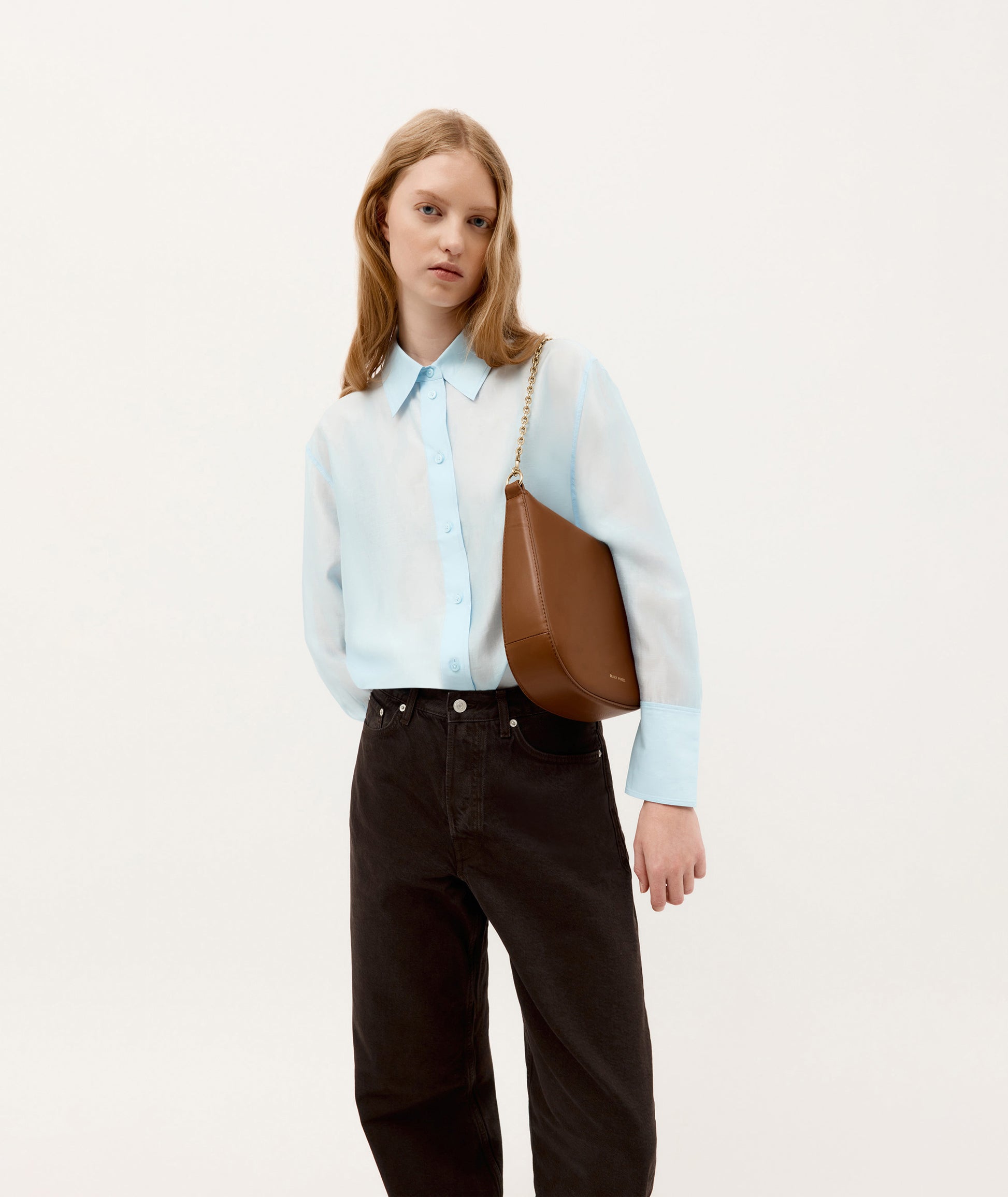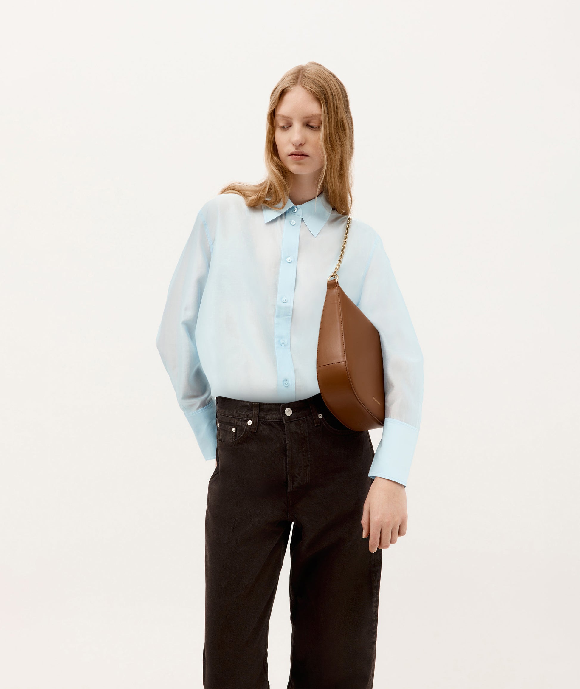 Crafted from Ironed Calf Nappa in Driftwood, Mr Sling is defined by sculptural folds and exposed seam detailing. A detachable brass chain, top handle, and an adjustable leather strap offer versatile styling.