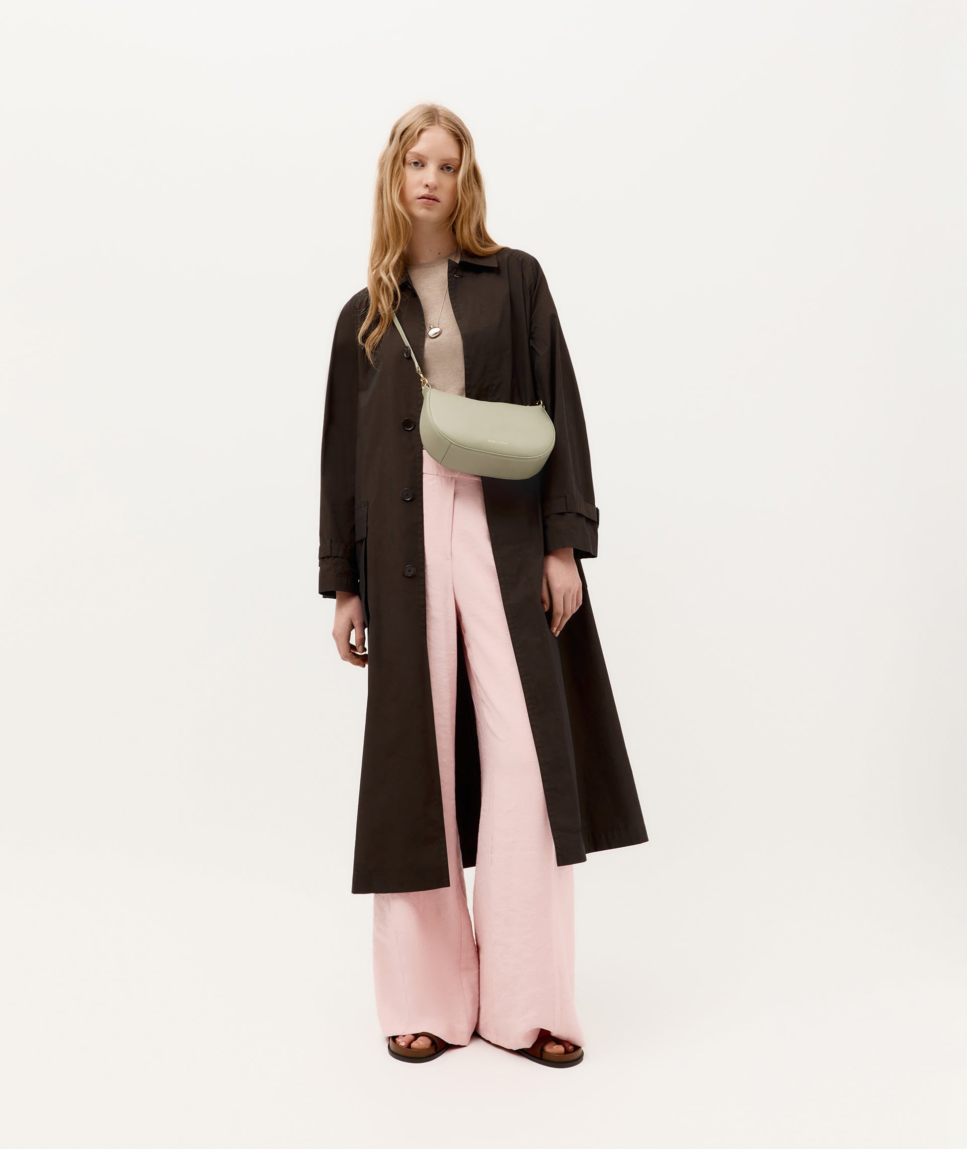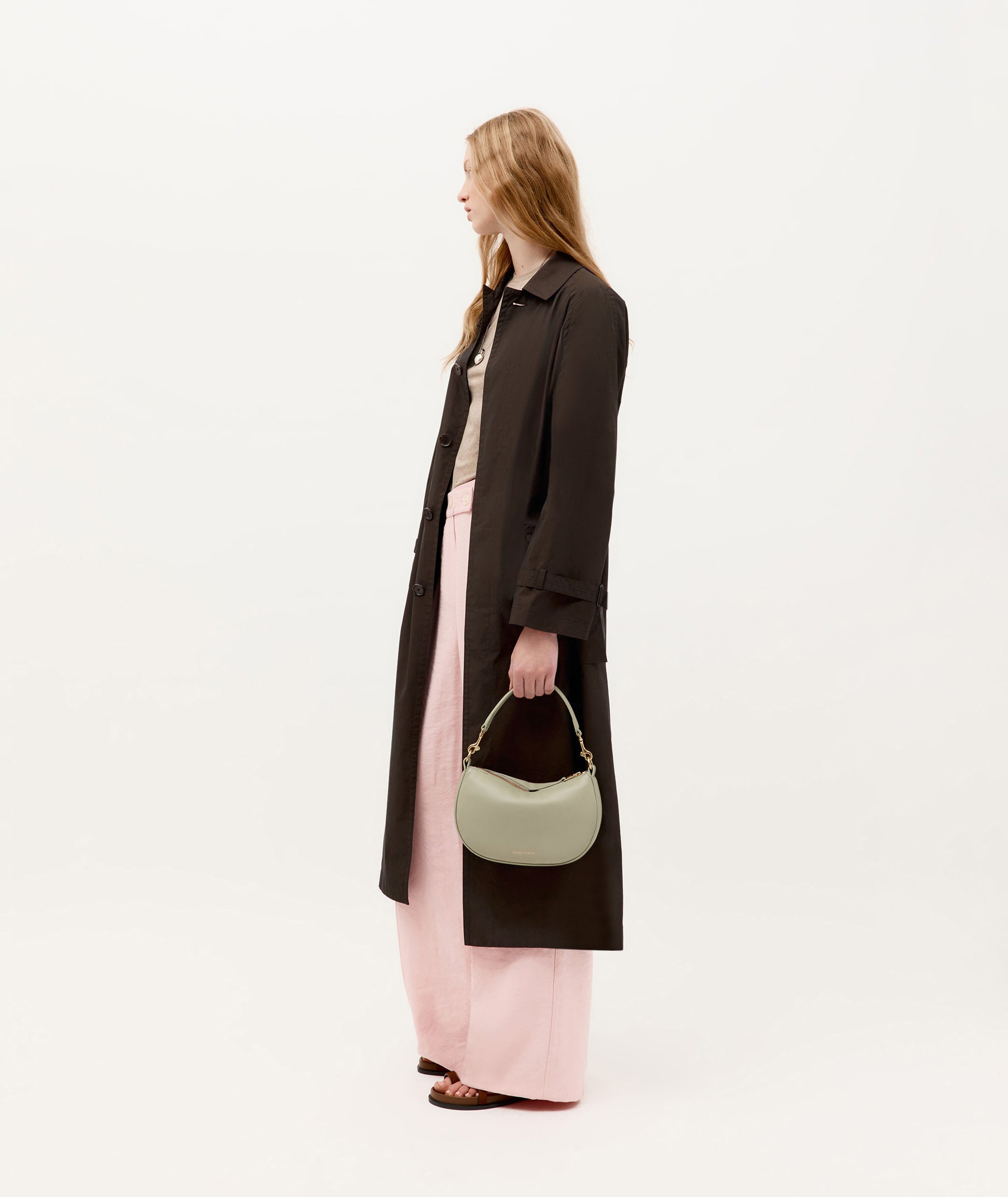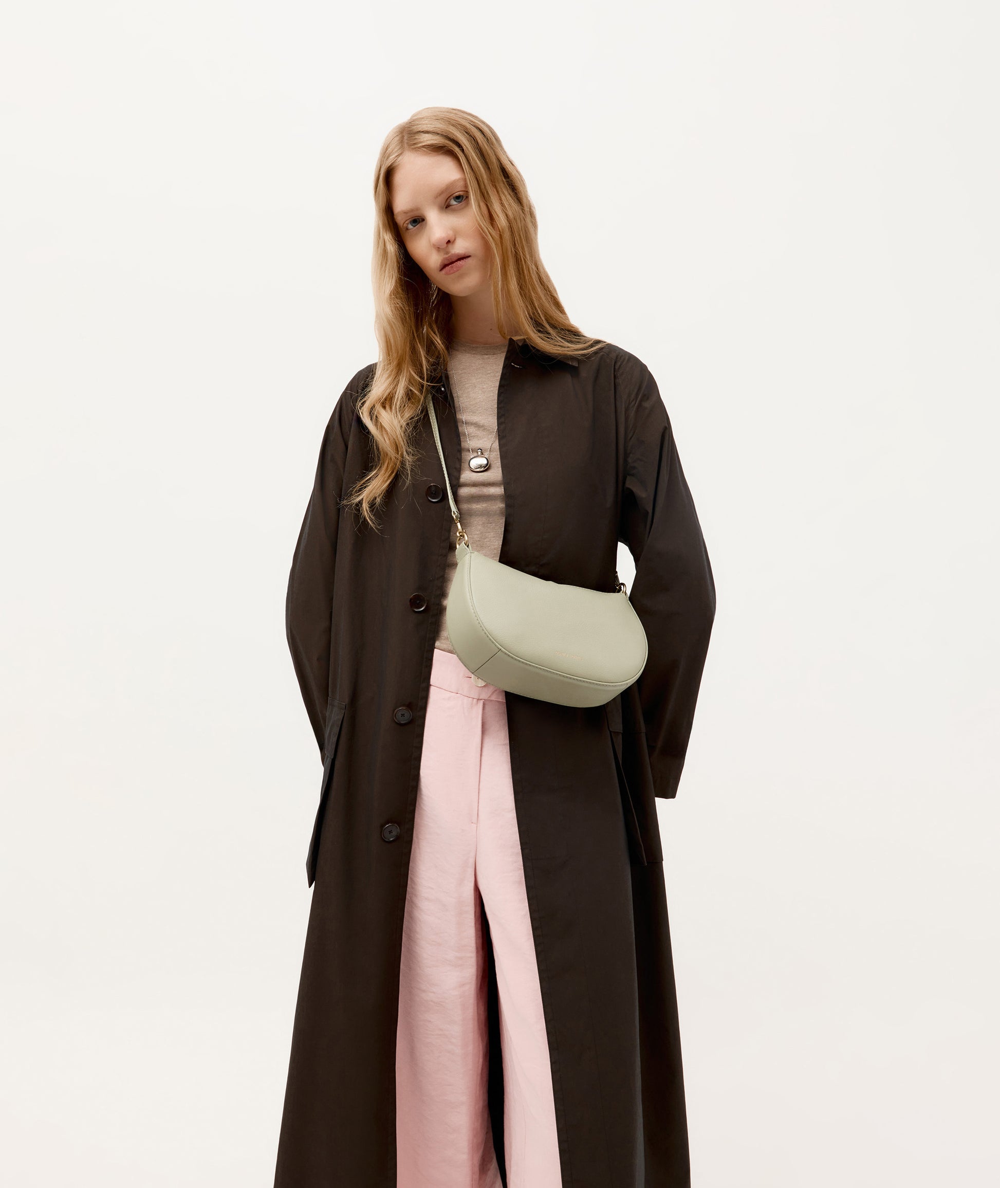 Petite in stature, Mr Sling Micro in Kina is crafted from buttery Calf Nappa. A detachable top handle and adjustable strap offer versatile styling, while internal pockets and a brass zip closure keep essentials secure.