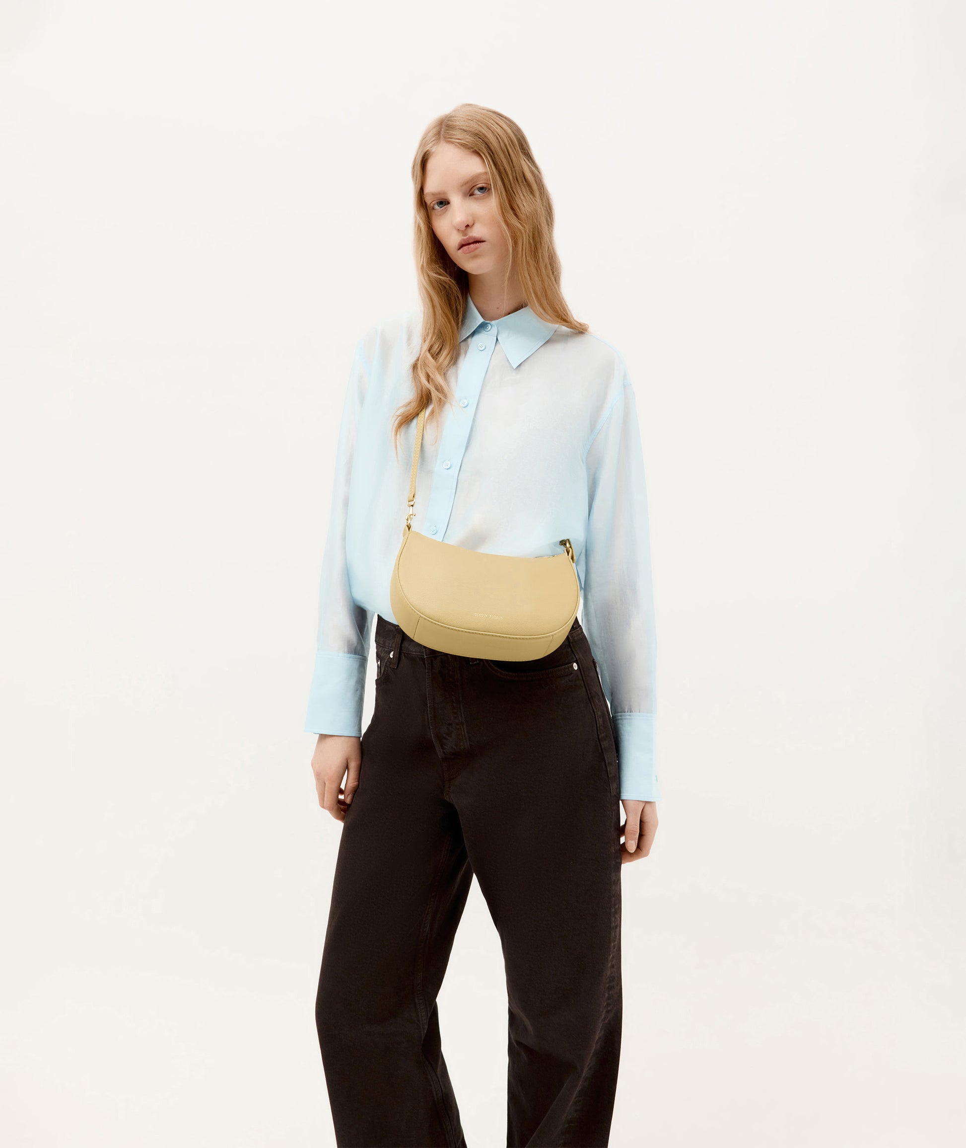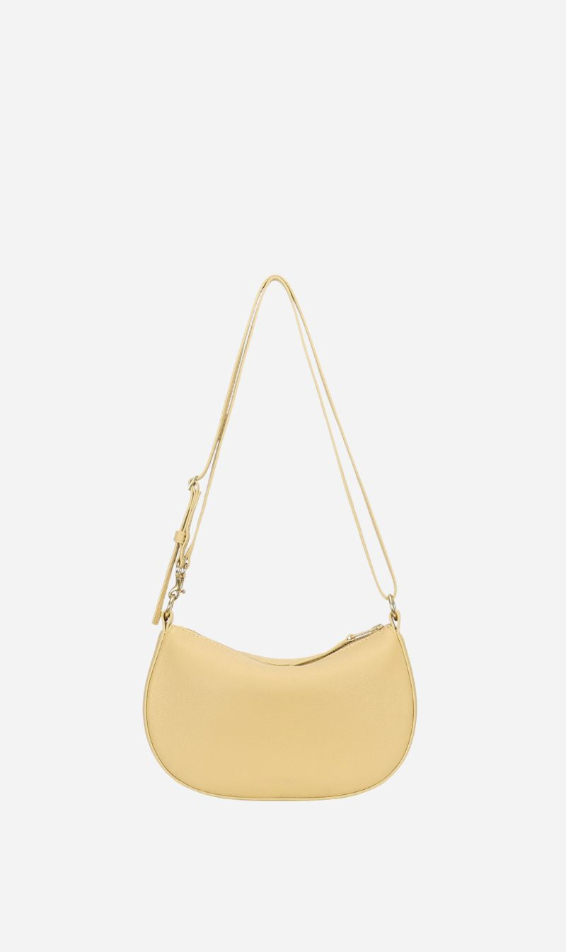Petite in stature, Mr Sling Micro in Straw is crafted from buttery Calf Nappa. A detachable top handle and adjustable strap offer versatile styling, while internal pockets and a brass zip closure keep essentials secure.