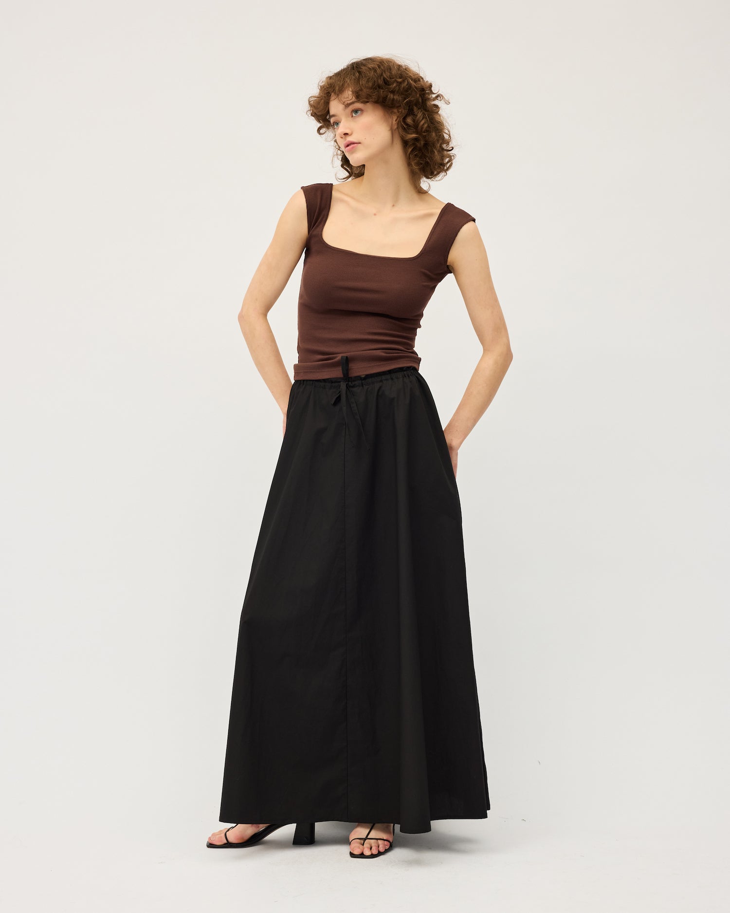 Curved square neckline, wide bra-friendly straps