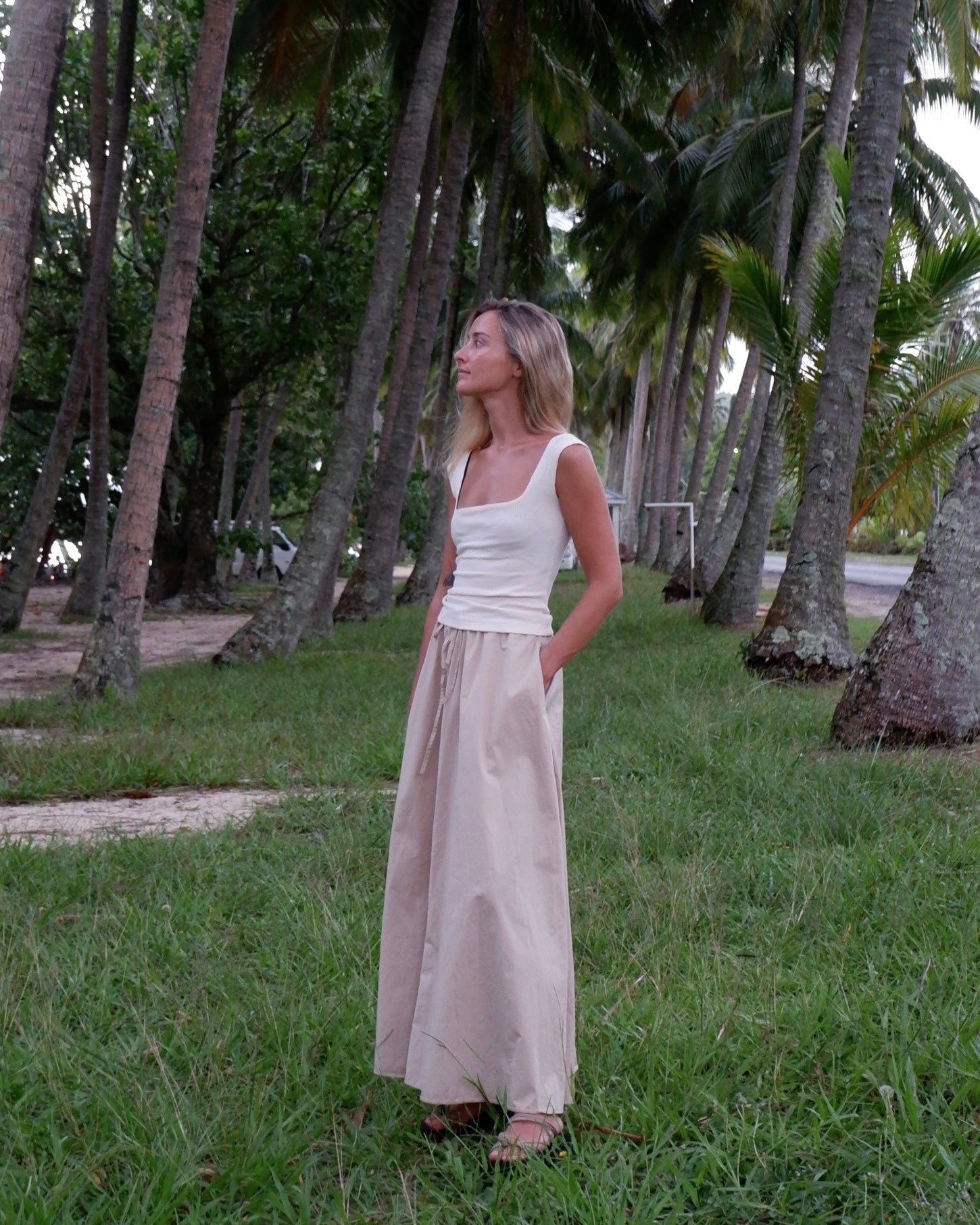 The Naia Tank by Dominique Healy is a timeless wardrobe essential. Crafted in a textured rib fabrication, this refined style features a softly curved square neckline and wide straps for a flattering, wearable finish. Designed to be worn on its own or layered under shirts and blouses, it offers comfort, versatility, and understated polish.