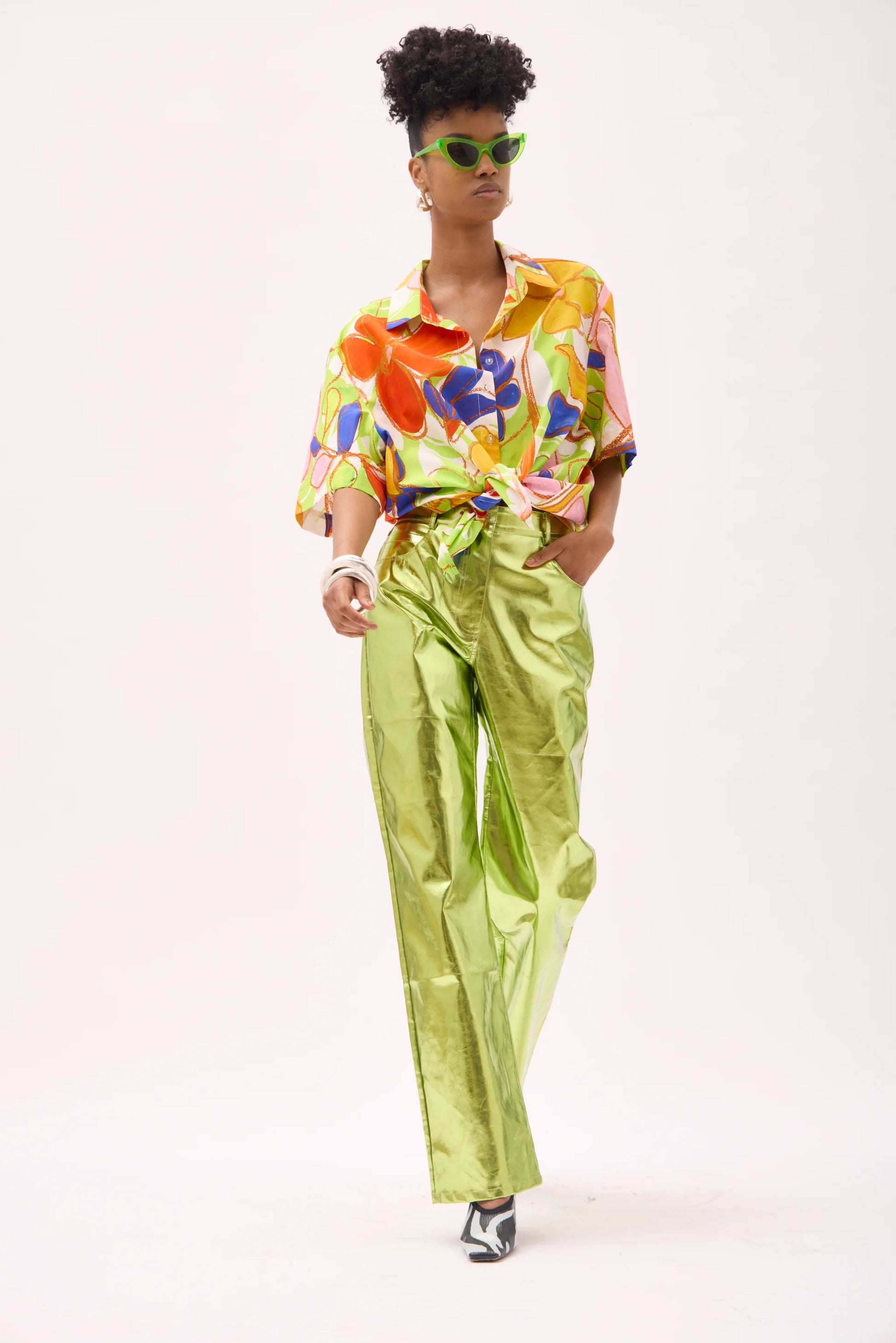 Style Santana classic collared oversized mens shirt with short sleeves, suitable for all body shapes to create your own look from casual to weekend vibe. Button front, back yoke with converted pleats.Â