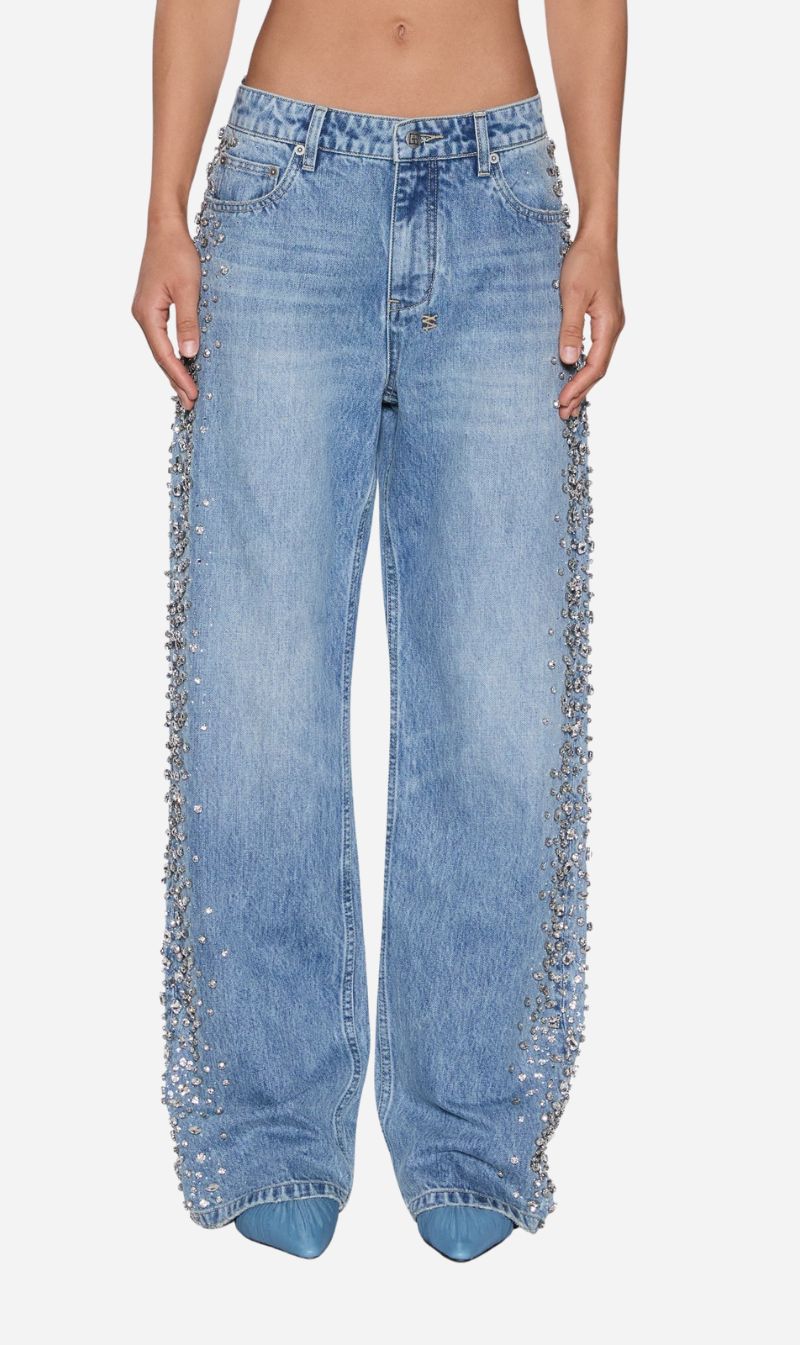 The Low Rider Kulture Krystal Jean by Ksubi delivers a statement take on classic denim, combining relaxed proportions with high-impact detailing. Cut with a low-rise waist and straight leg, this style is crafted from premium European rigid denim in a mid-blue wash with subtle wear throughout. Hand-embellished with clustered diamante studs and rhinestones along the side seams, it’s finished with signature Ksubi branding for a bold yet considered look.