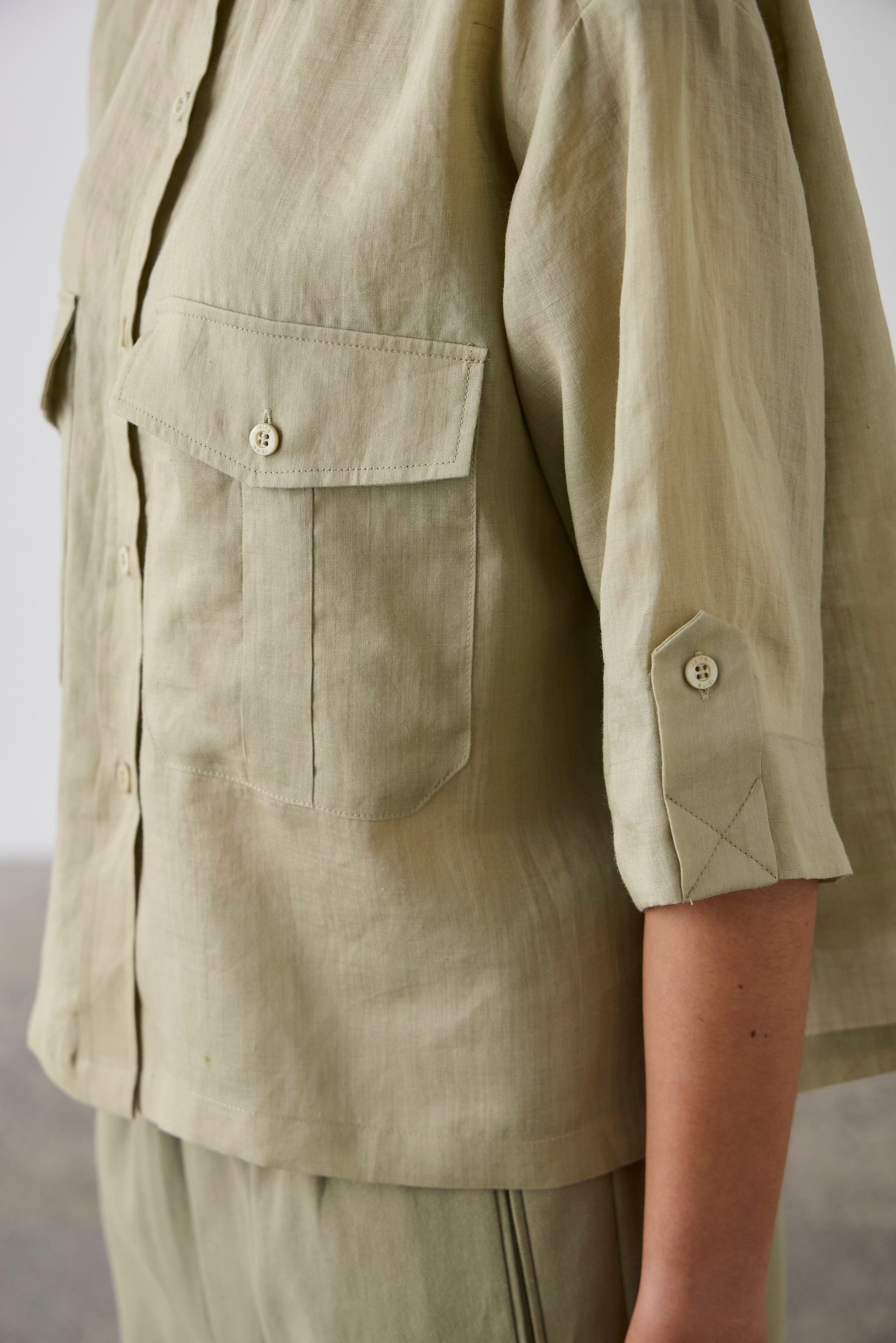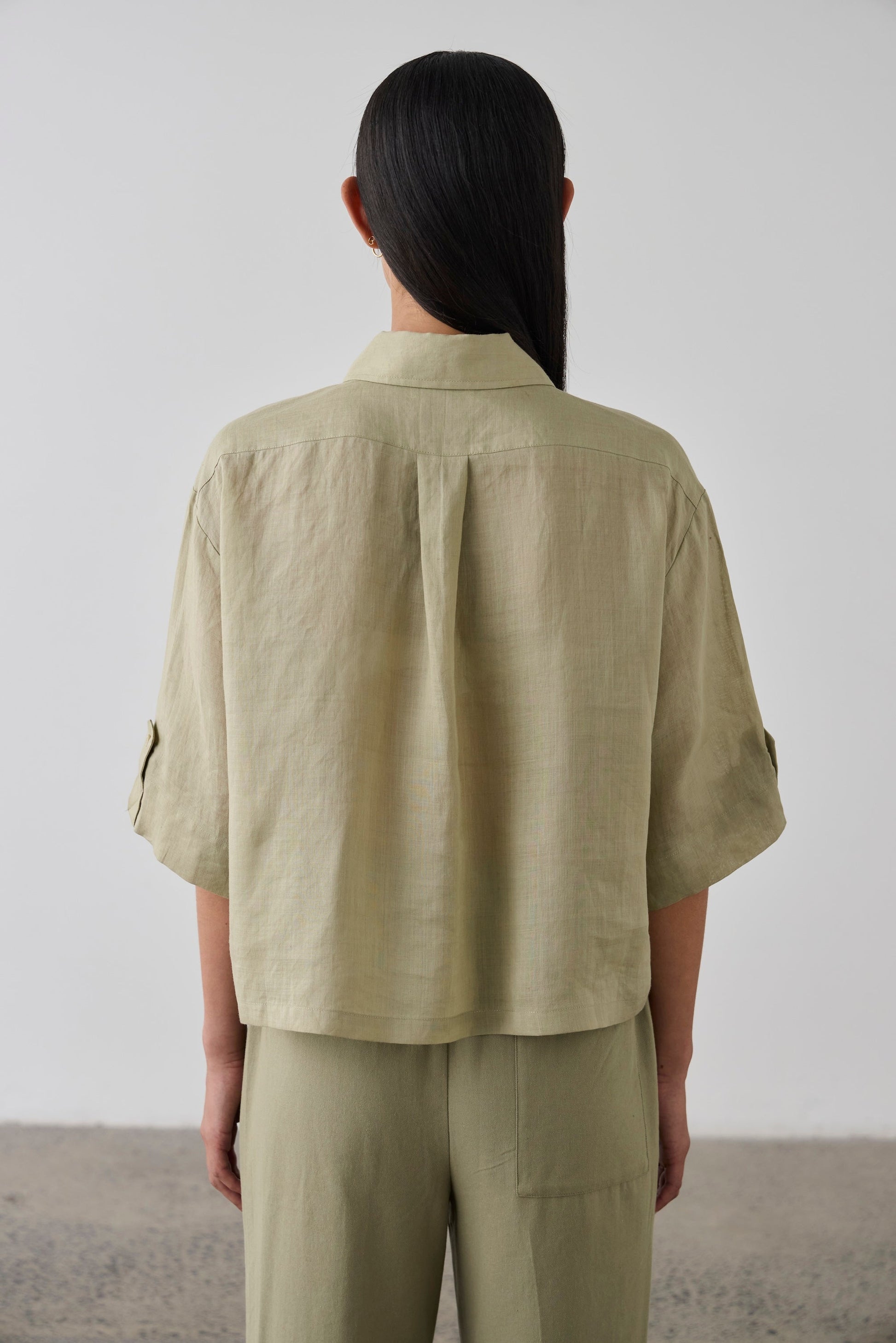 A modern update on a timeless staple. Our linen shirt is crafted from fine 100% linen, offering a crisp, breathable feel perfect for warm weather. Cut cropped for a contemporary silhouette, it features elbow-length sleeves, patch pockets, and clean lines that balance structure with ease.