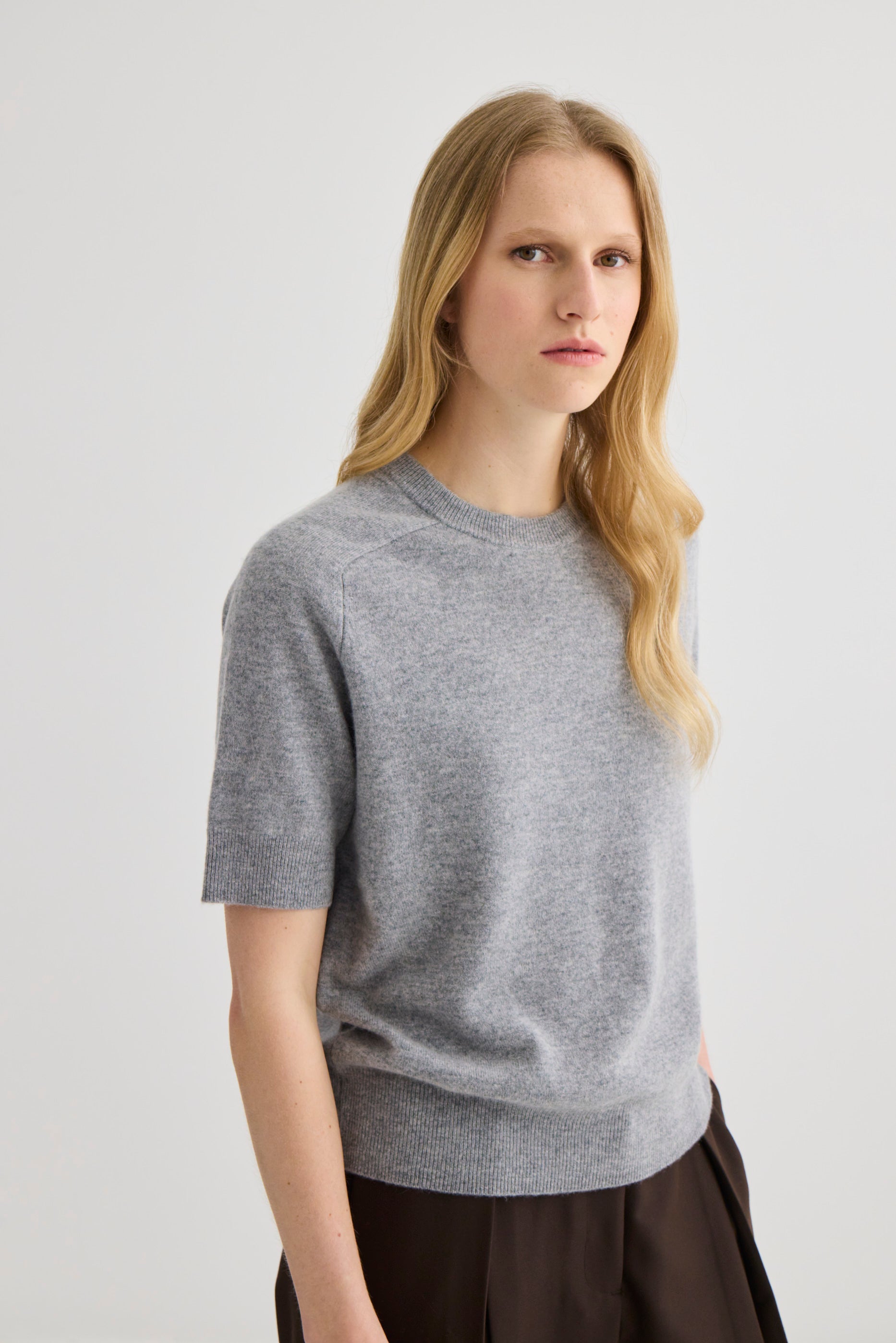 The Laing Jasper Short Sleeve Crewneck in Grey Marle is a refined everyday style crafted from A-Grade Mongolian cashmere, knitted in a fine 12-gauge for softness and durability.