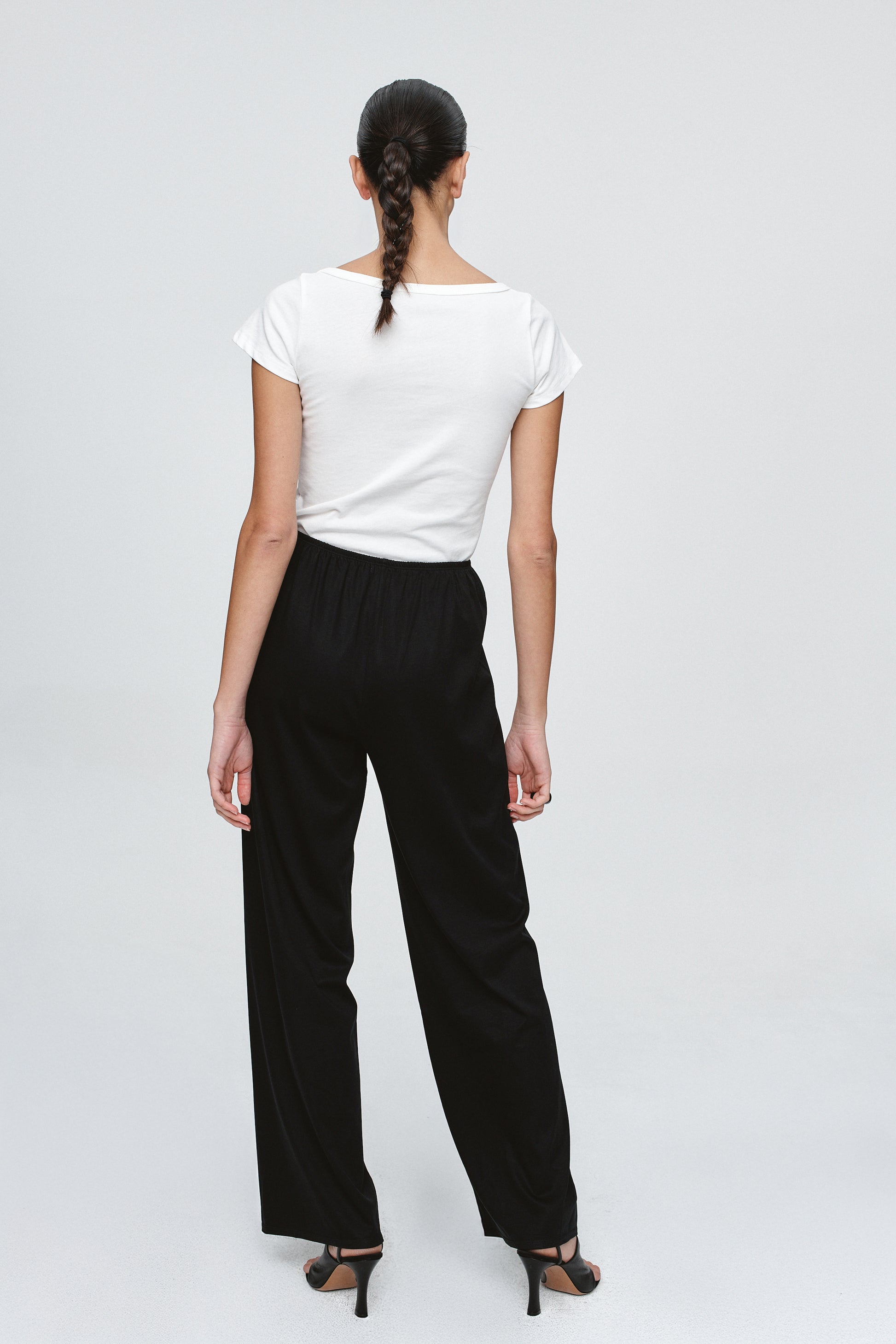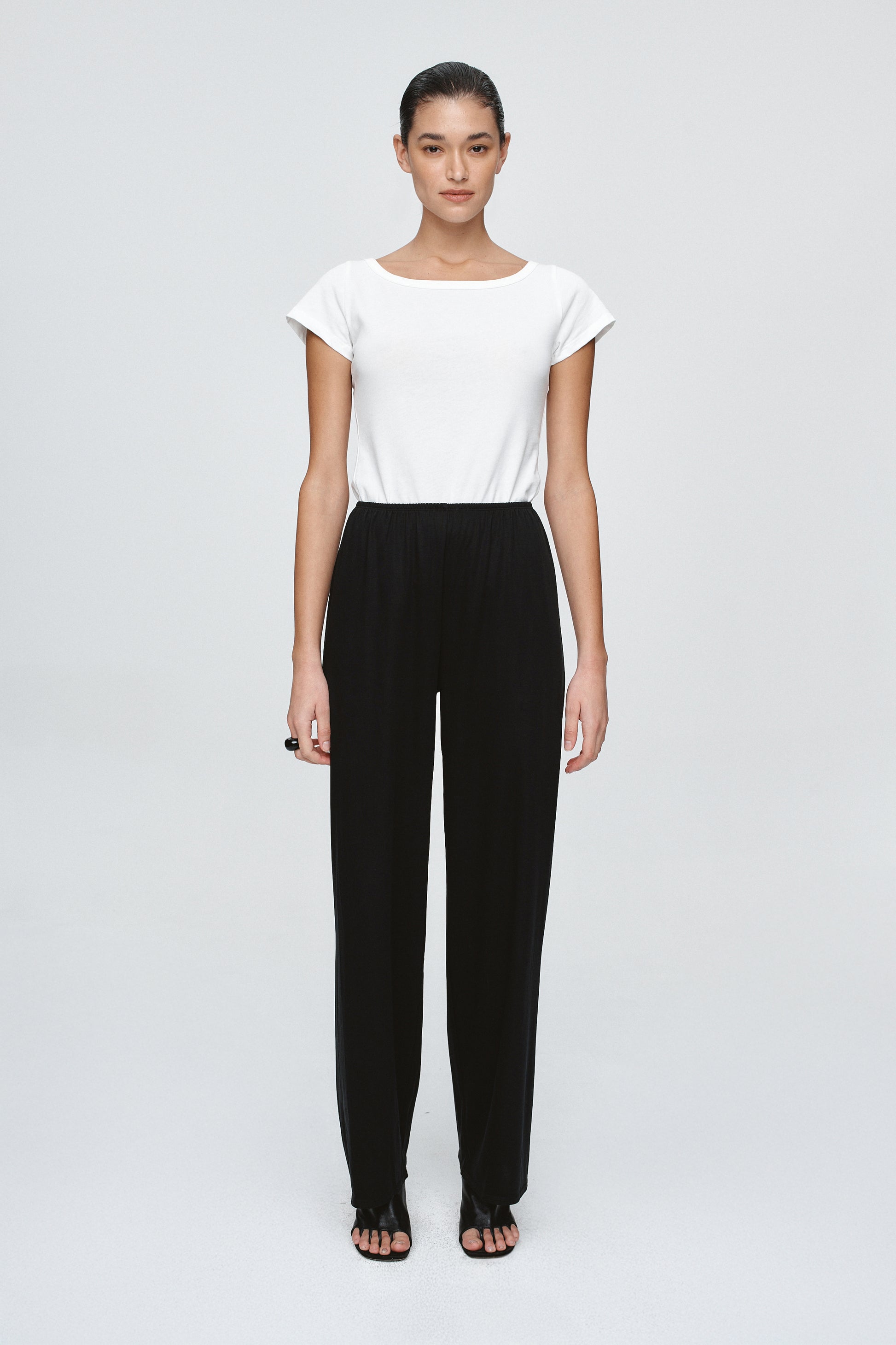The Dree Pant is cut from a soft blend of 50% Tencel and 50% Cotton, combining fluid drape with breathable structure. Designed with a relaxed, wide-leg shape, the Dree Pant offers ease and movement while maintaining a refined shape. The elasticated waistband sits comfortably at the waist, creating a clean pull-on fit that transitions effortlessly from day to evening.
