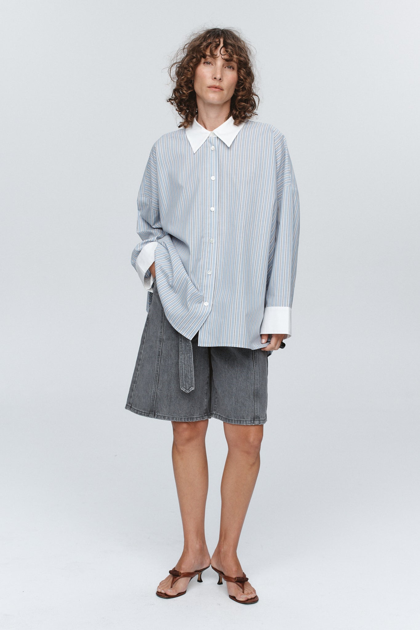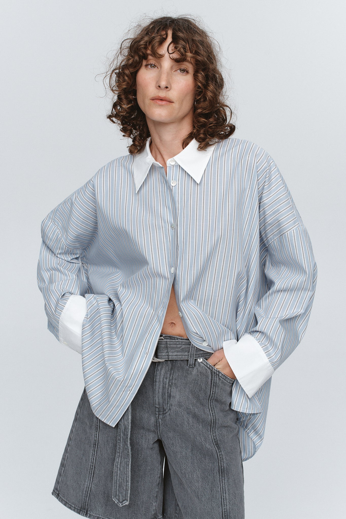 The Edie Shirt offers a modern interpretation of classic shirting constructed from 100% Tencel. Features a classic point collar and button cuffs. Designed with a concealed front button placket and subtle drop shoulder for a relaxed shape. The back yoke is finished with Marle-engraved rivets. An embroidered Marle emblem is positioned on the cuffs. The hem is curved with a clean finish.