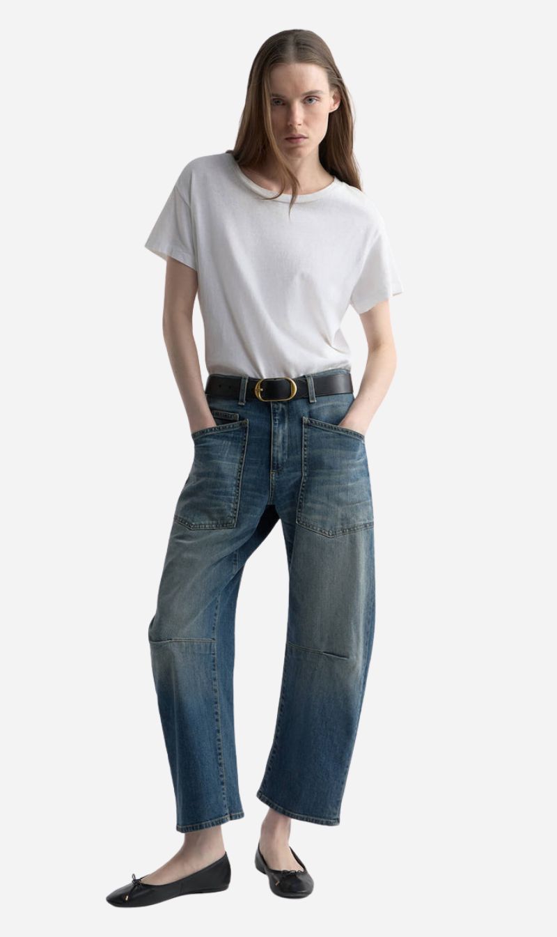 A mid-rise bow-leg jean born from vintage workwear and reimagined in premium Japanese stretch denim. The Shon is cut with relaxed ease through the leg, shaped by a curved inseam and articulated seam detail at the knees—balancing structure with fluidity for a silhouette that is utilitarian, sexy, easy, and transformative.