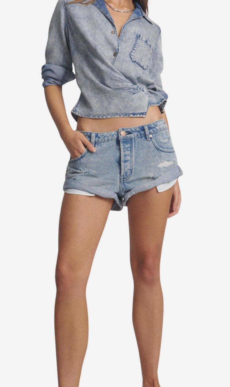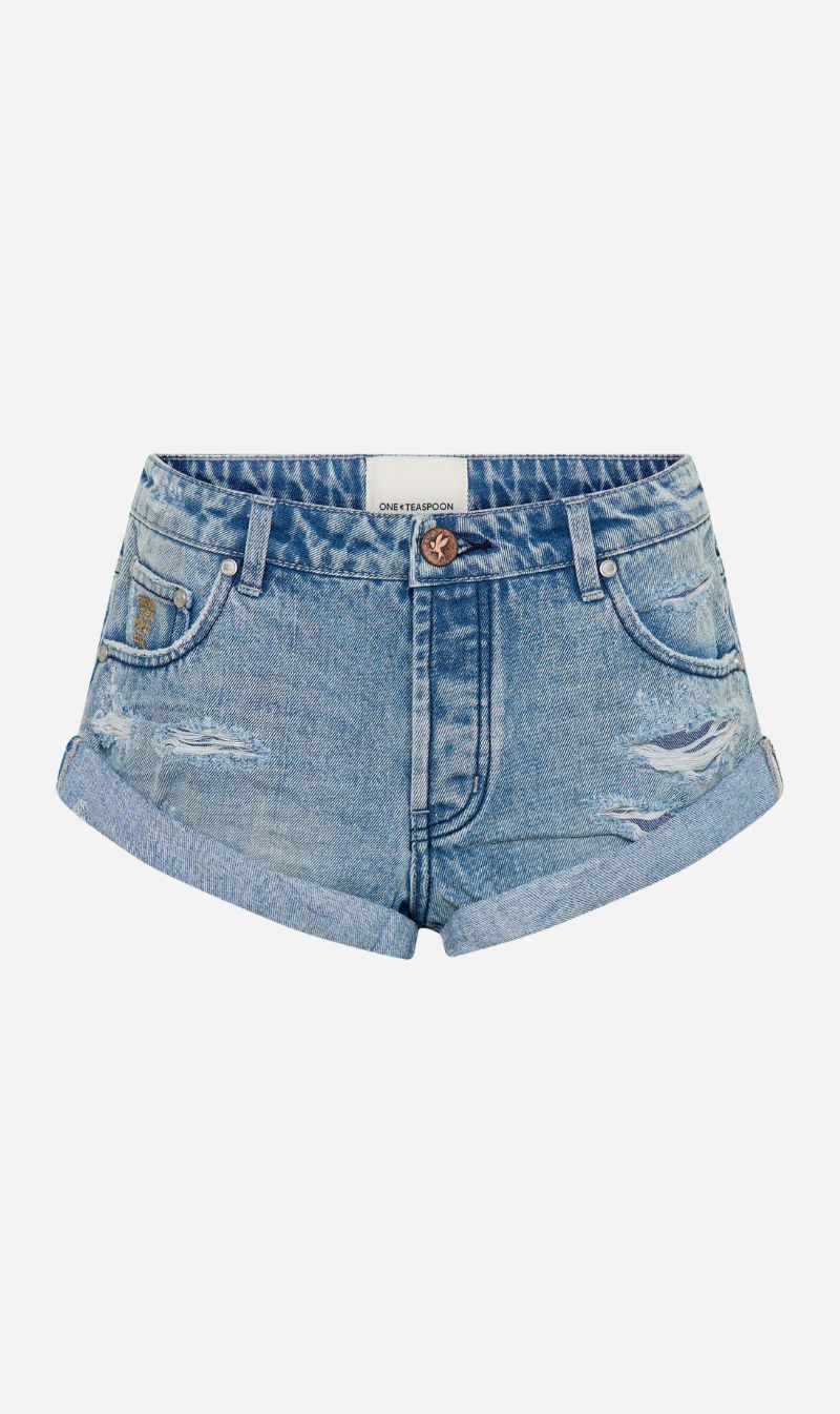 The LOW WAIST BANDIT is a One Teaspoon cult classic short. The one and only. With large patch pockets. Low waist and relaxed in fit. It's slouchy in all the right places and includes our bower bird button and signature hem, rolled and twisted like a bandit. Designed to be worn low at the hips.
