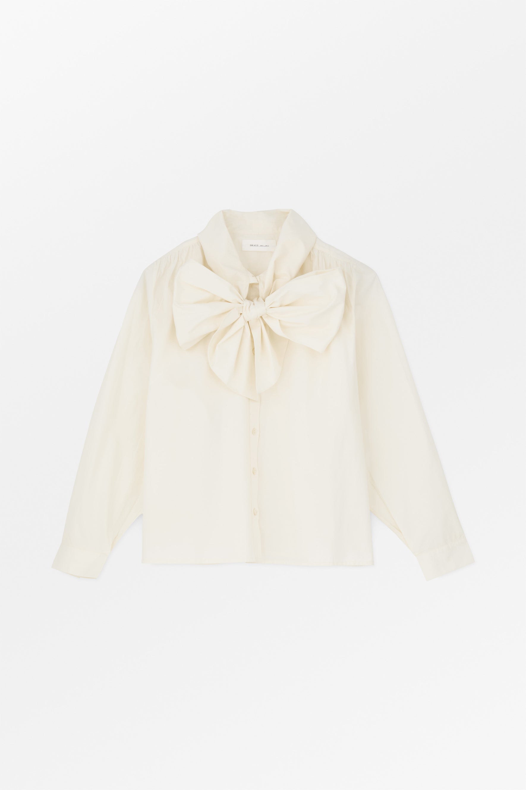 Lady Bow Shirt has a voluminous and feminine collar that ties in a large bow at the front, or which can be styled as a scarf. The shirt is made from 100% organic cotton and fastens with buttons at the front and cuffs.
