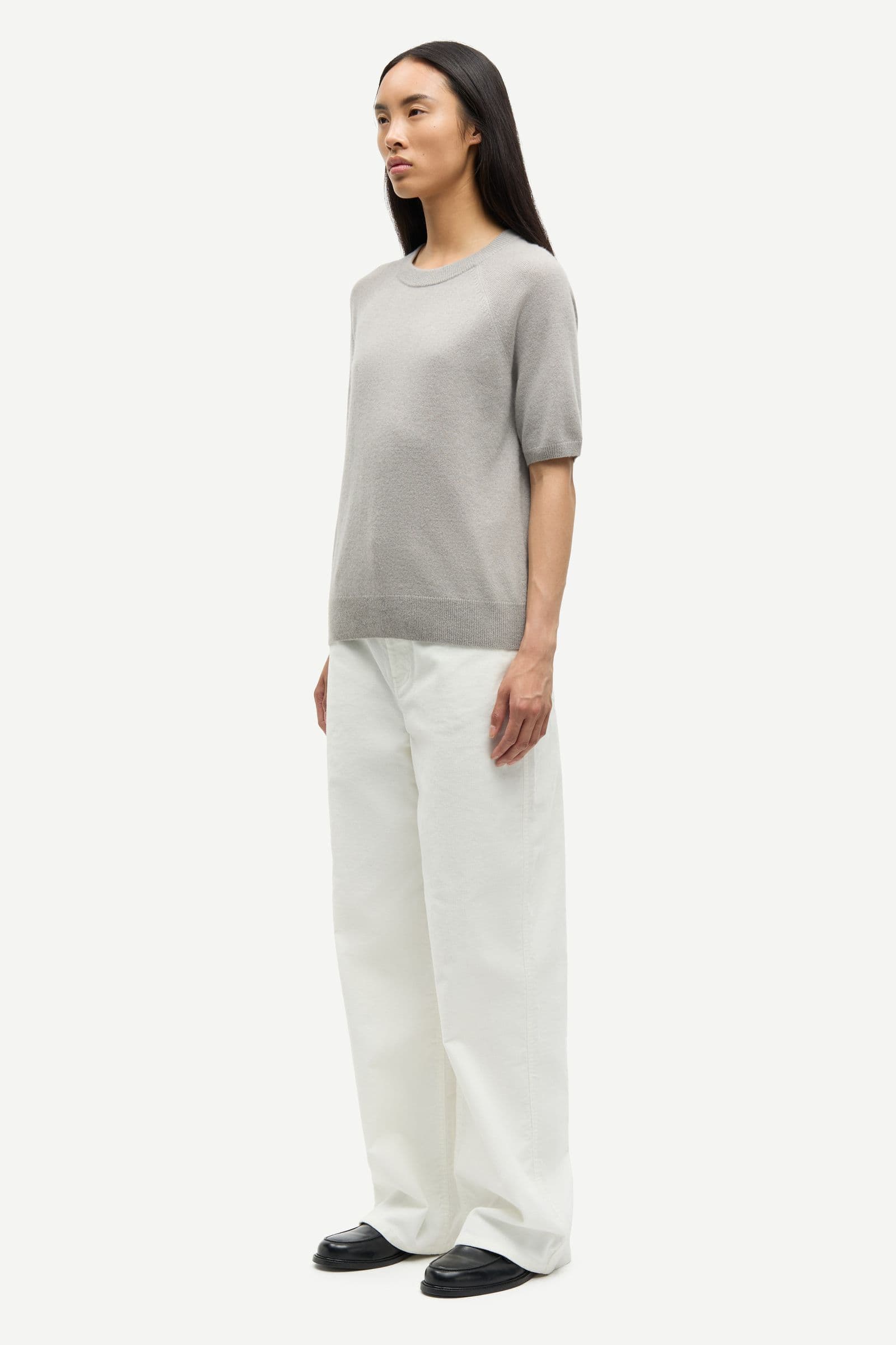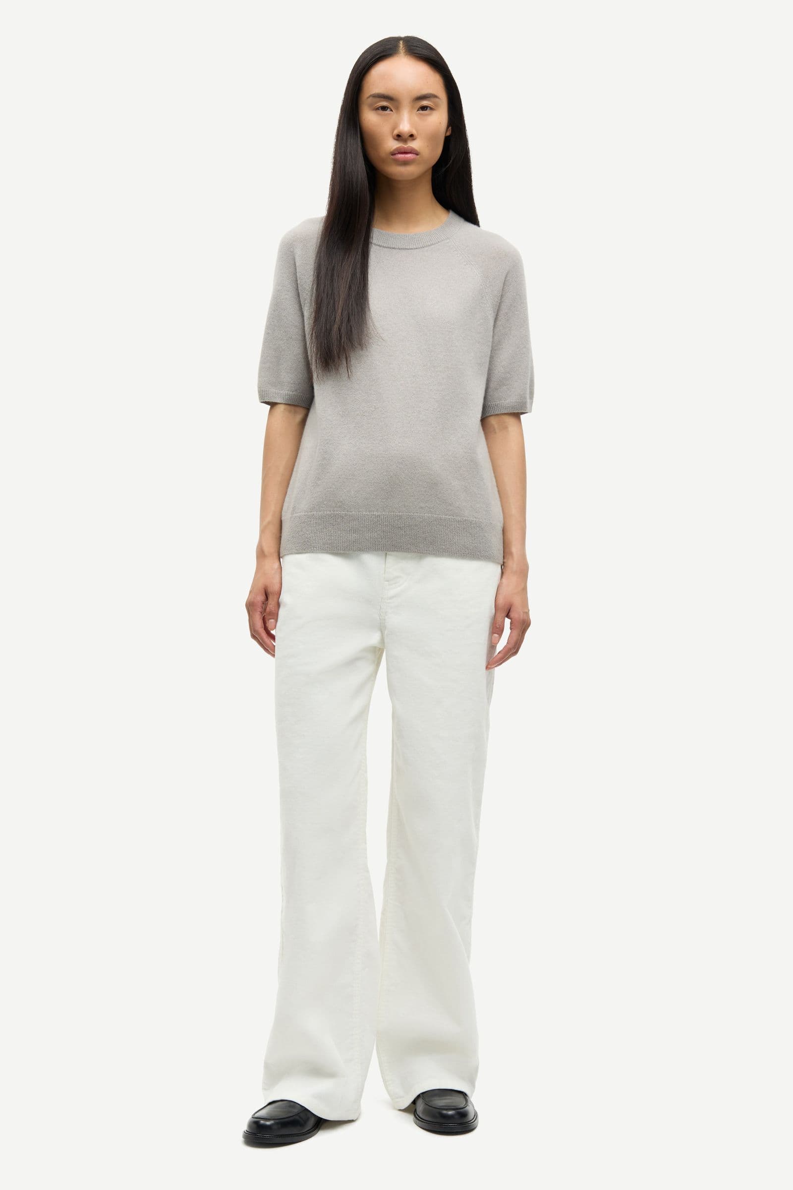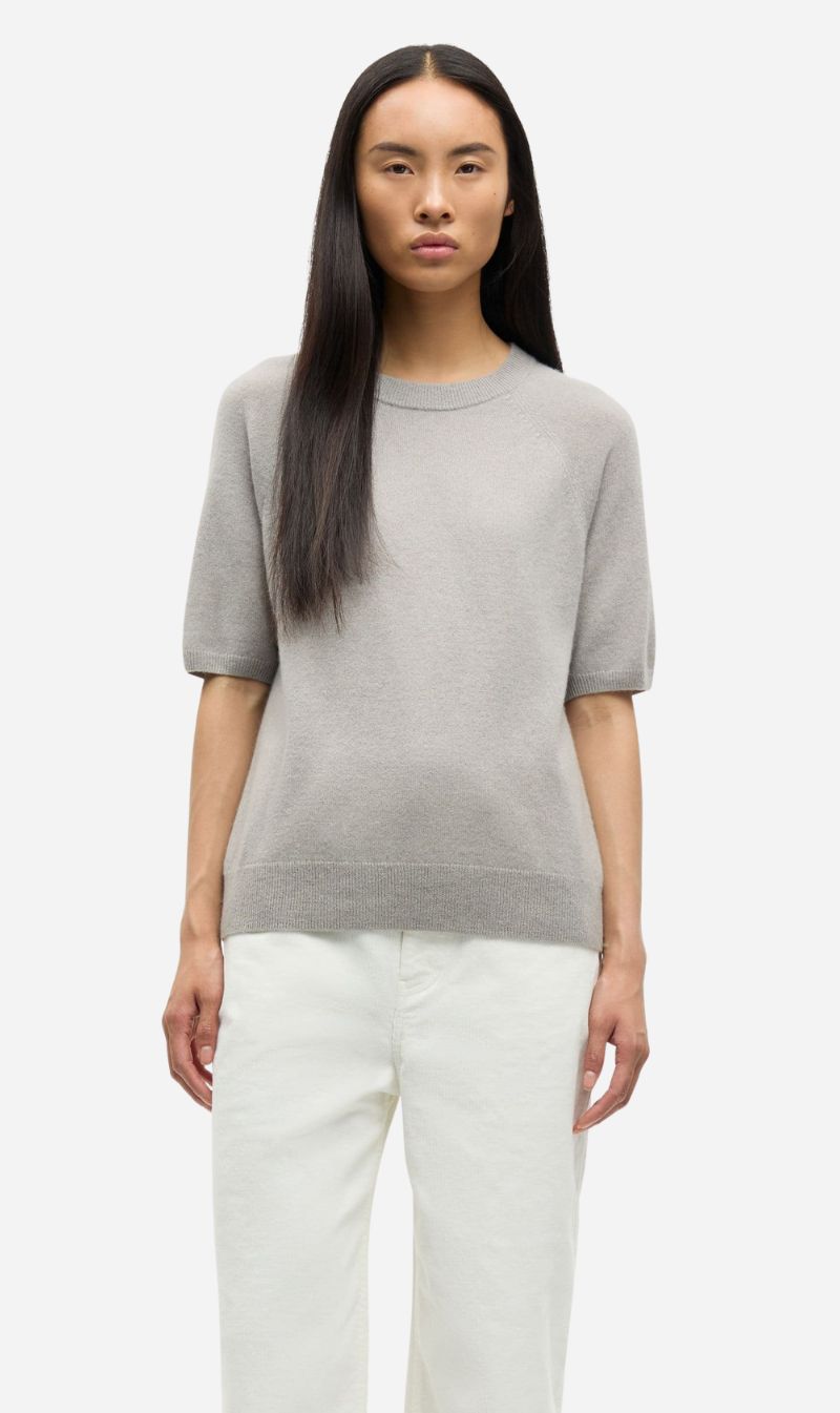 Short-sleeved sweater with a regular fit and raglan sleeves. Rib-knitted collar, cuffs, and hem. Round neck. Main material made from 100% cashmere.