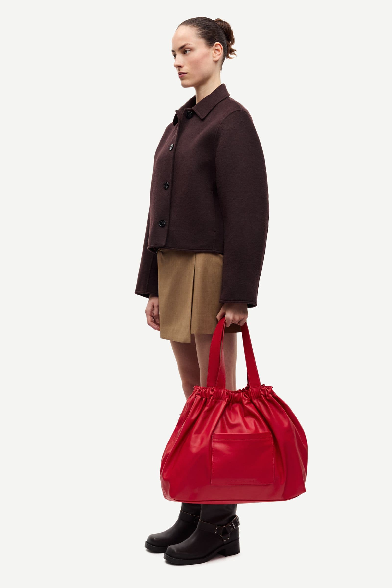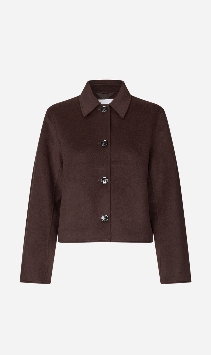 Felted collared jacket with a regular fit. Button closure on the front. Side slit pockets on the front. Main material made from a blend including recycled wool. This product is GRS certified. Each stage of the supply chain has met strict social, environmental, and chemical requirements.