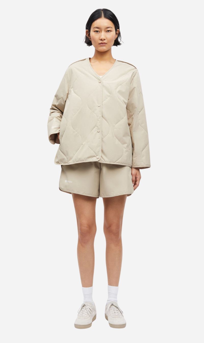 Quilted jacket with a loose fit and dropped shoulders. Snap button closure on the front. Side slit pockets on the front and patch pocket on the inside. Logo branded patch on the neck at the back. Padded with PrimaLoft® Black insulation. Main lining made from mini ripstop. Main material made from the water-resistant, windproof, and breathable WINDSTOPPER® fabrication by GORE‑TEX LABS.