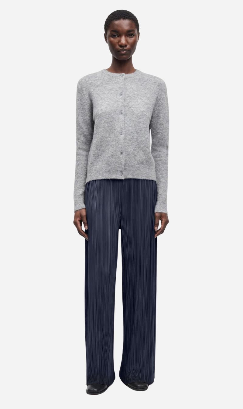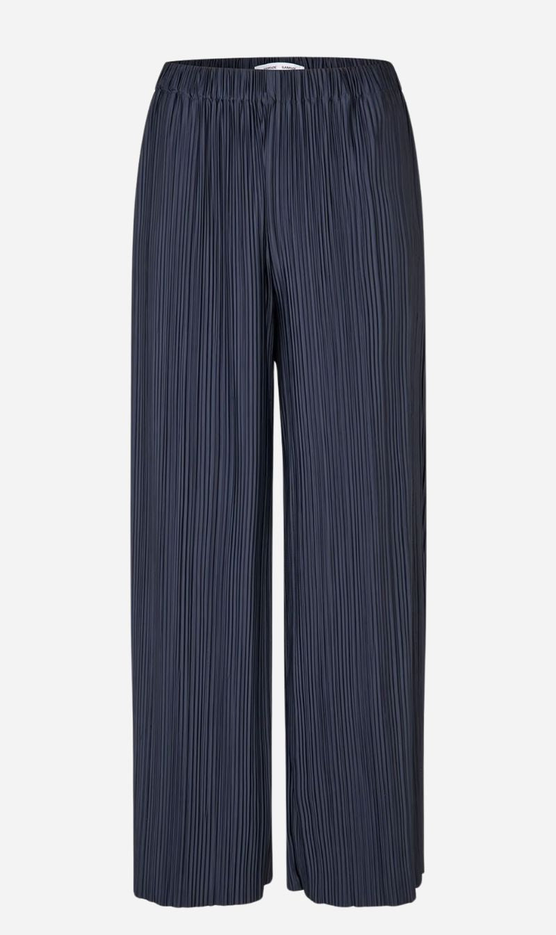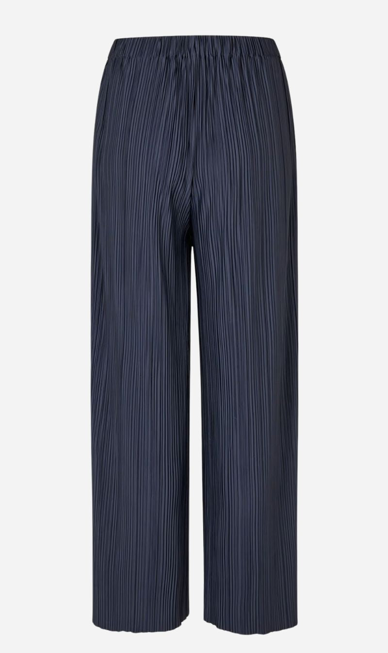 Finely pleated jersey trousers with a loose fit and wide leg. Elasticated waistband. Side slit pockets. Main material made from a recycled polyester-blend. This product is GRS certified. Each stage of the supply chain has met strict social, environmental, and chemical requirements.