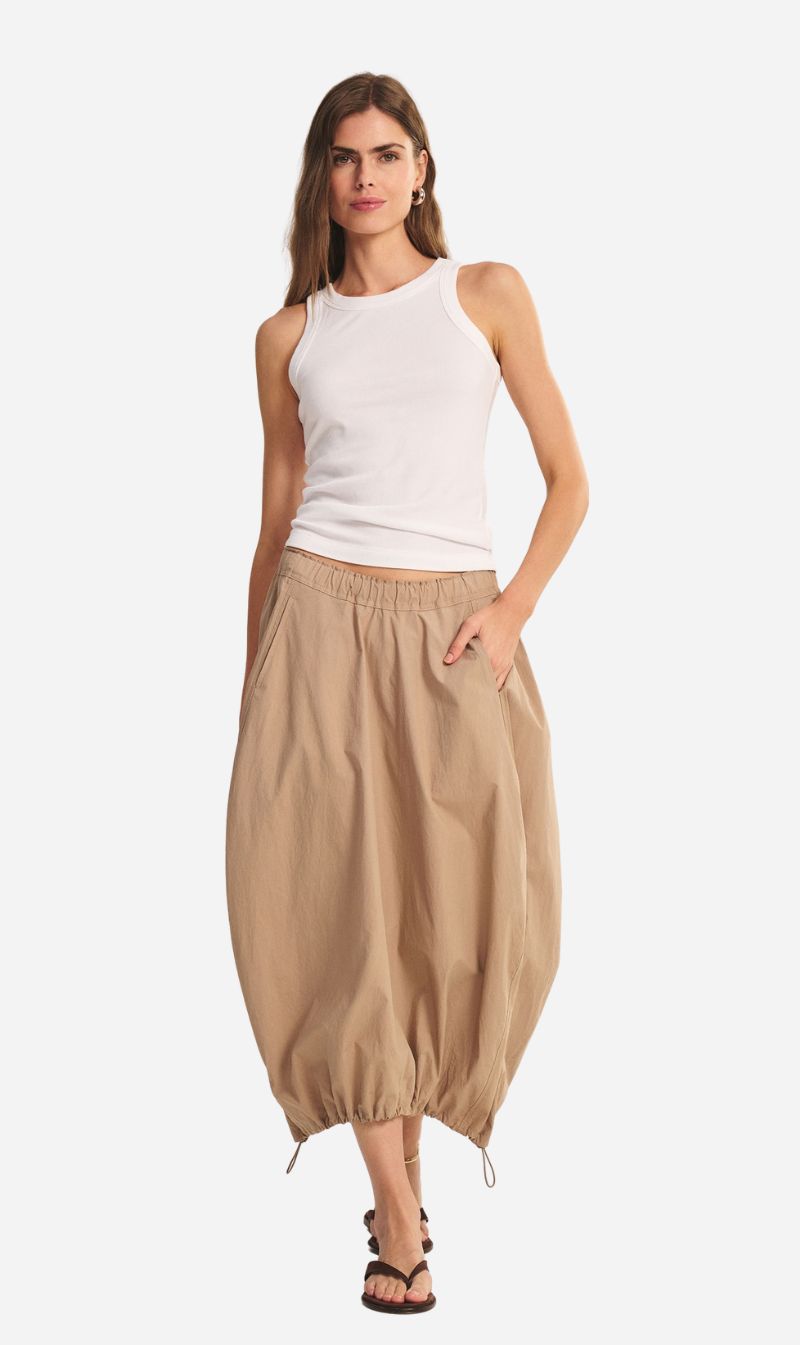 The Hollis Skirt by Velvet is a lightweight, midi-length skirt with a pinched hem for subtle structure. Designed for effortless styling, it offers a flattering silhouette that works from day to night.