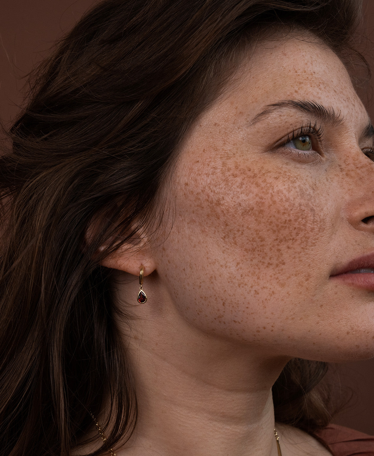 A perfect mix of timeless and modern, the Ophelia Hoops feature a bezel set, pear-cut Garnet that delicately sways from our signature Zoë& Morgan hoop. Crafted from recycled 925 Sterling Silver and plated locally in 22k Gold Vermeil, these hoops add a touch of colour and movement to your earring stack. Garnets are associated with love and friendship due to their symbolism of the heart, inner fire, and life force. Perfect for stacking, the Ophelia Hoops can be worn alone for a classic look or combined for a bolder style, making them a solid foundation for your earring collection. Wear them when you are looking to add a little extra fire to your day.